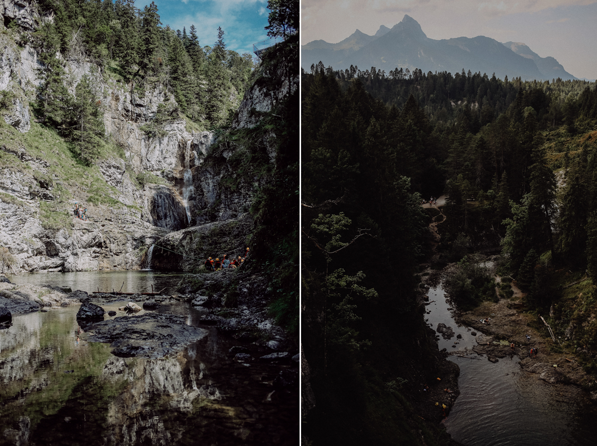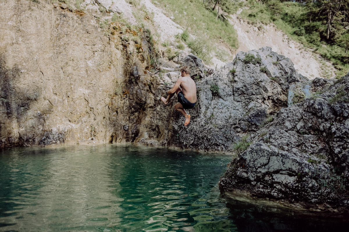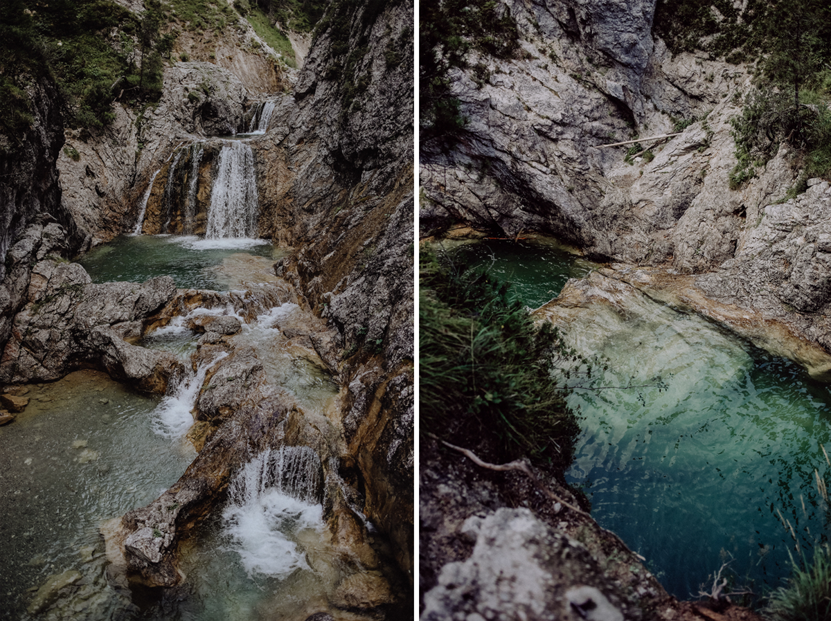 Wenn Du uns schon ein bisschen kennst, kannst Du aber vielleicht ahnen, dass wir kaum umhin kamen, nicht wenigstens in einem der natürlichen Pools, die sich zwischen den Wasserfällen gebildet hatten, baden zu gehen. Das Wasser war zwar gewohnt eisig, doch die Vorstellung in den funkelnd blauen Pool zu springen war genug, um die kalten Füße zu vergessen. Da wir glücklicherweise vor uns eine Canyoning-Gruppe beobachten konnten, wussten wir auch ganz genau, an welchen Stellen das Wasser tief genug ist, um bedenkenlos hineinzuspringen.