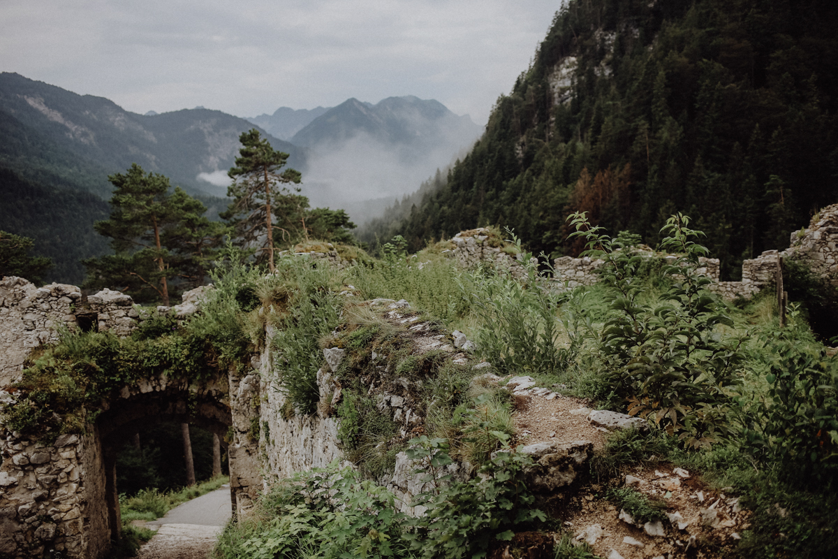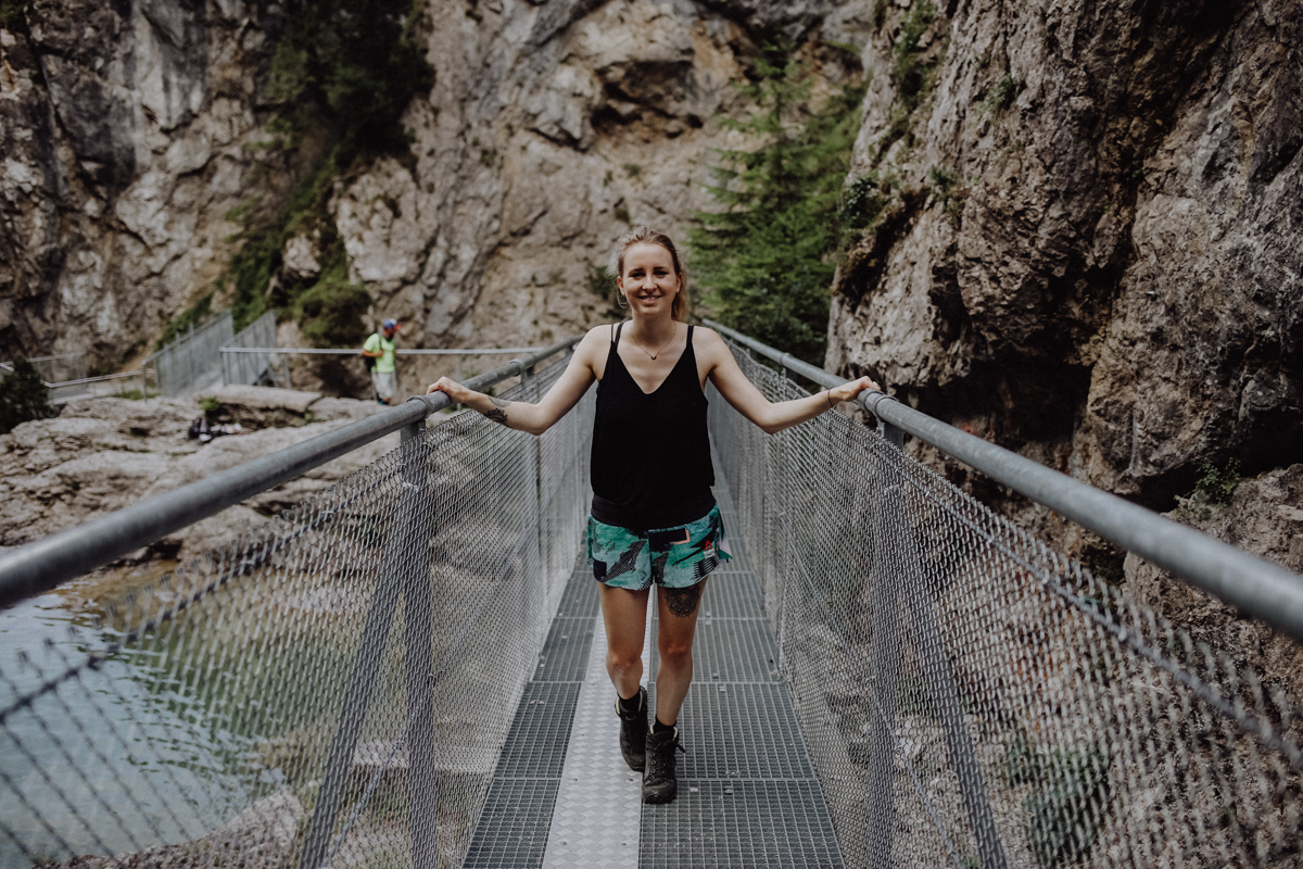 Nach etwas mehr als sieben Stunden, als das kribbelnde Gefühl aus dem Herz wie immer längst in die Beine gerutscht war, erreichten wir den kleinen Ort Reutte in Tirol. Weil es trotzdem noch nicht spät genug war, den Tag im Hotel zu verbummeln und wir nach der langen Zeit des Sitzens auch großen Bewegungsdrang hatten, folgten wir den Schildern zum Parkplatz am Fuße der Stuibenfälle. Am Elektrizitätswerk verließen wir dann bei schönstem Sonnenschein das Auto und befanden und nur wenige hundert Meter weiter bereits in unserem wilden Tirol-Wochenende!