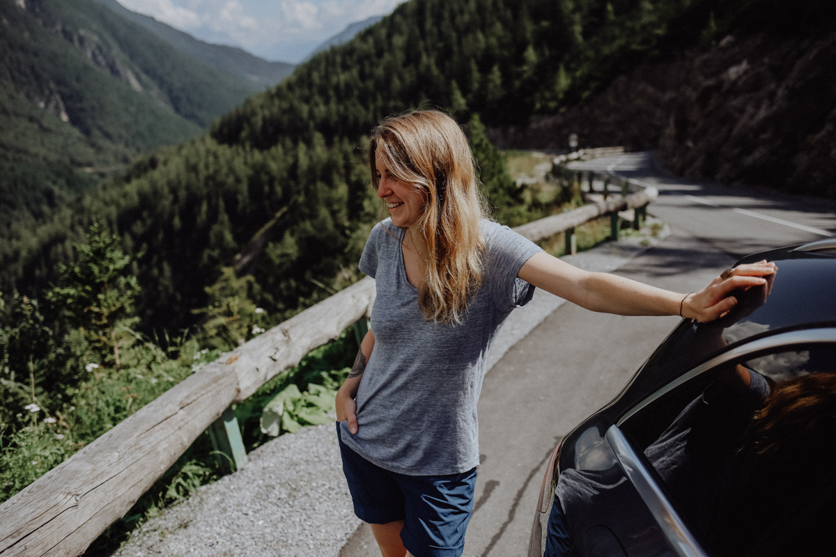 Angekommen im Tal freuten wir uns riesig auf die bevorstehende Fahrt ins Tannheimer Tal, wo wir die letzten beiden Nächte in einem schnieken Hotel übernachten und eine weitere vielversprechende Wanderung geplant hatten. Statt aber den direkten Weg zu nehmen, entschieden wir uns ganz nach dem Motto “Always take the scenic route” für einen kleinen Umweg über den Hahntennjoch Pass. Denn auch, wenn ich das nur ungern zugebe und dem nur sehr selten nachgebe, steh ich ja total auf Autofahren auf anspruchsvollen Straßen. Wenn sich dann auch noch so eine Aussicht bietet wie hier, macht mich das so richtig glücklich!