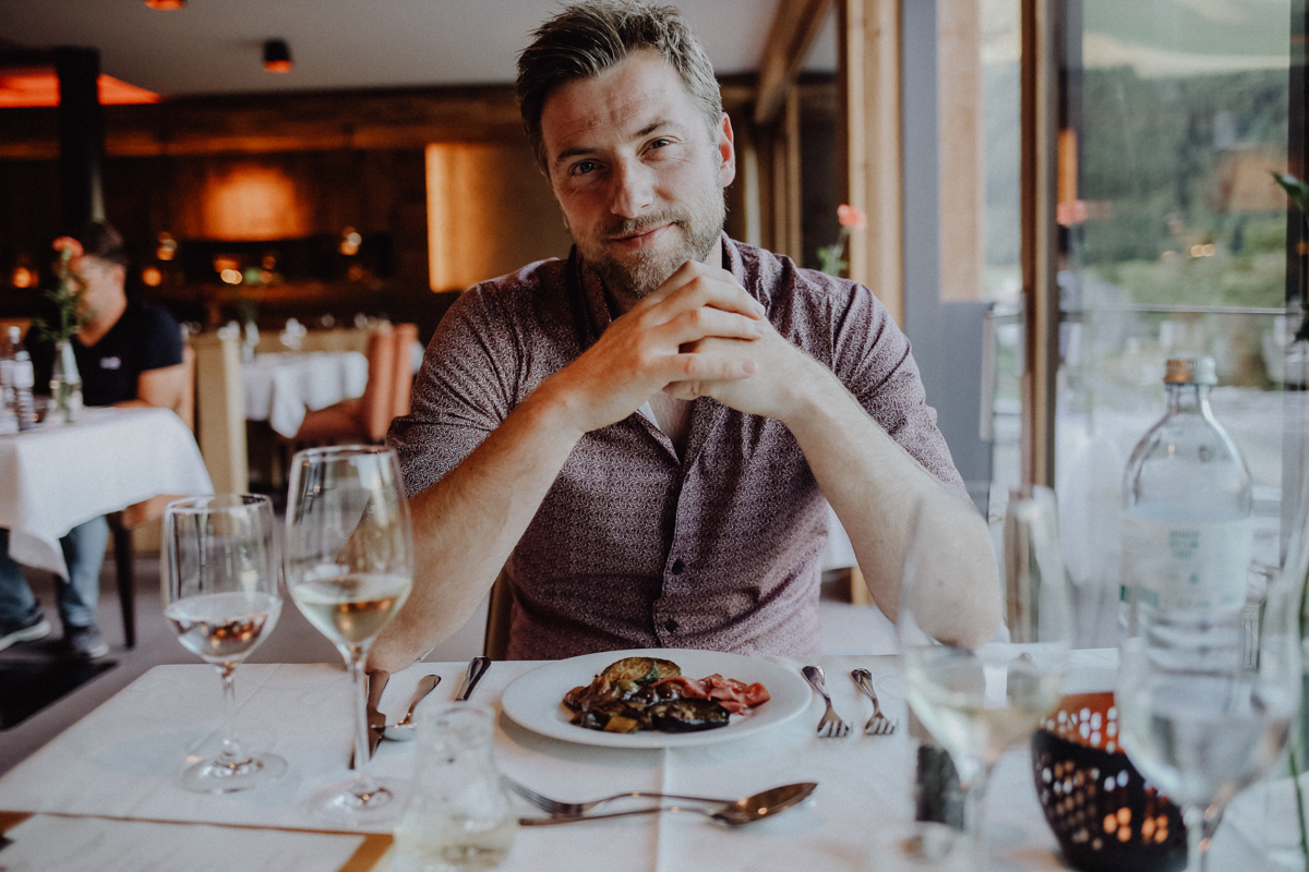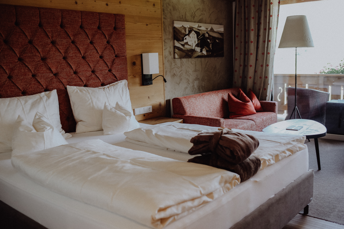 Nach der langen Fahrt und dem sonnenreichen Nachmittag waren wir dennoch so kaputt, dass uns unser schniekes Hotel, der Tannenhof in Reutte, anzog wie ein Stück Kuchen eine Biene. Umso glücklicher waren wir, als wir feststellten, dass das Hotel völlig ruhig und abseits des Ortskerns zwischen Wiesen und Bergen liegt – perfekt also, um an einem solchen Tag die langersehnte Ruhe zu finden, die wir als Großstädter oft so sehnsuchtsvoll suchen. Deshalb machten wir an diesem Abend auch gar nichts anderes mehr, als uns in unsere superweichen Betten einzukuscheln und von dort aus das abendliche Sommergewitter durch die bodentiefen Scheiben zu beobachten. Ich sag Dir, das ist besser als Kino!