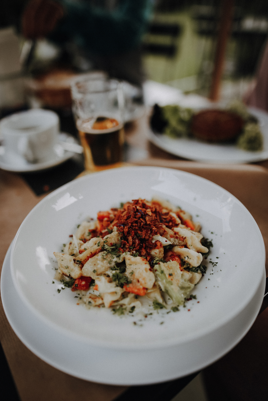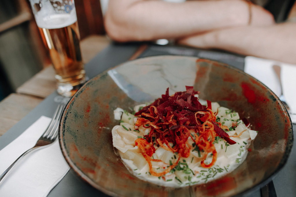 Hier habe ich die mit Abstand besten Älplermagronen bekommen, die ich je gegessen habe! Selbst, als wir längst Flims wieder erreicht hatten, konnte ich nicht aufhören von ihnen zu schwärmen! Falls Du selbst noch nicht in den Genuss gekommen bist: Älplermagronen sind ein typisch schweizerisches Gericht bestehend aus Teigwaren, Kartoffeln, Rahm, Käse und Zwiebeln. Traditionell werden sie mit Apfelmus gegessen.