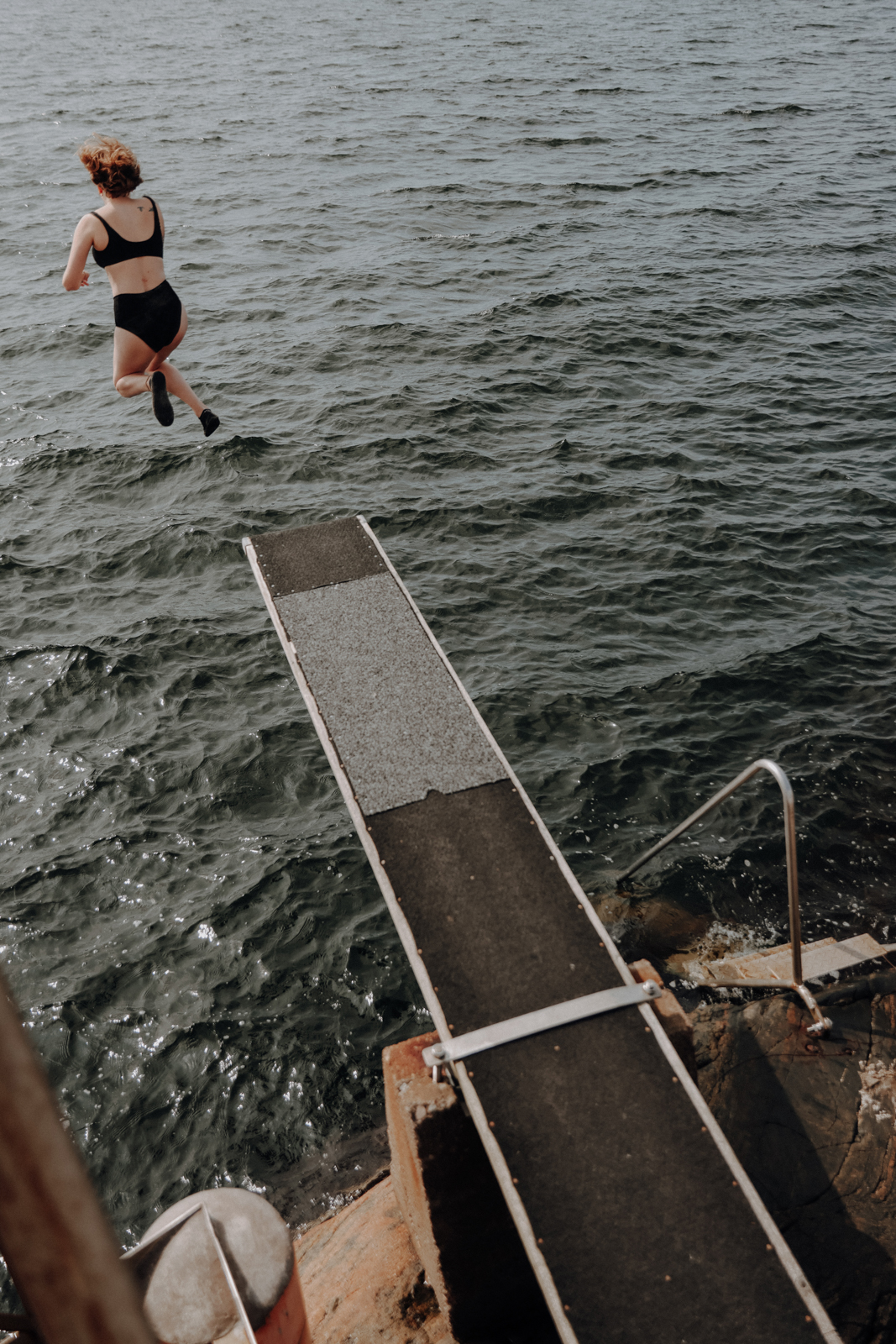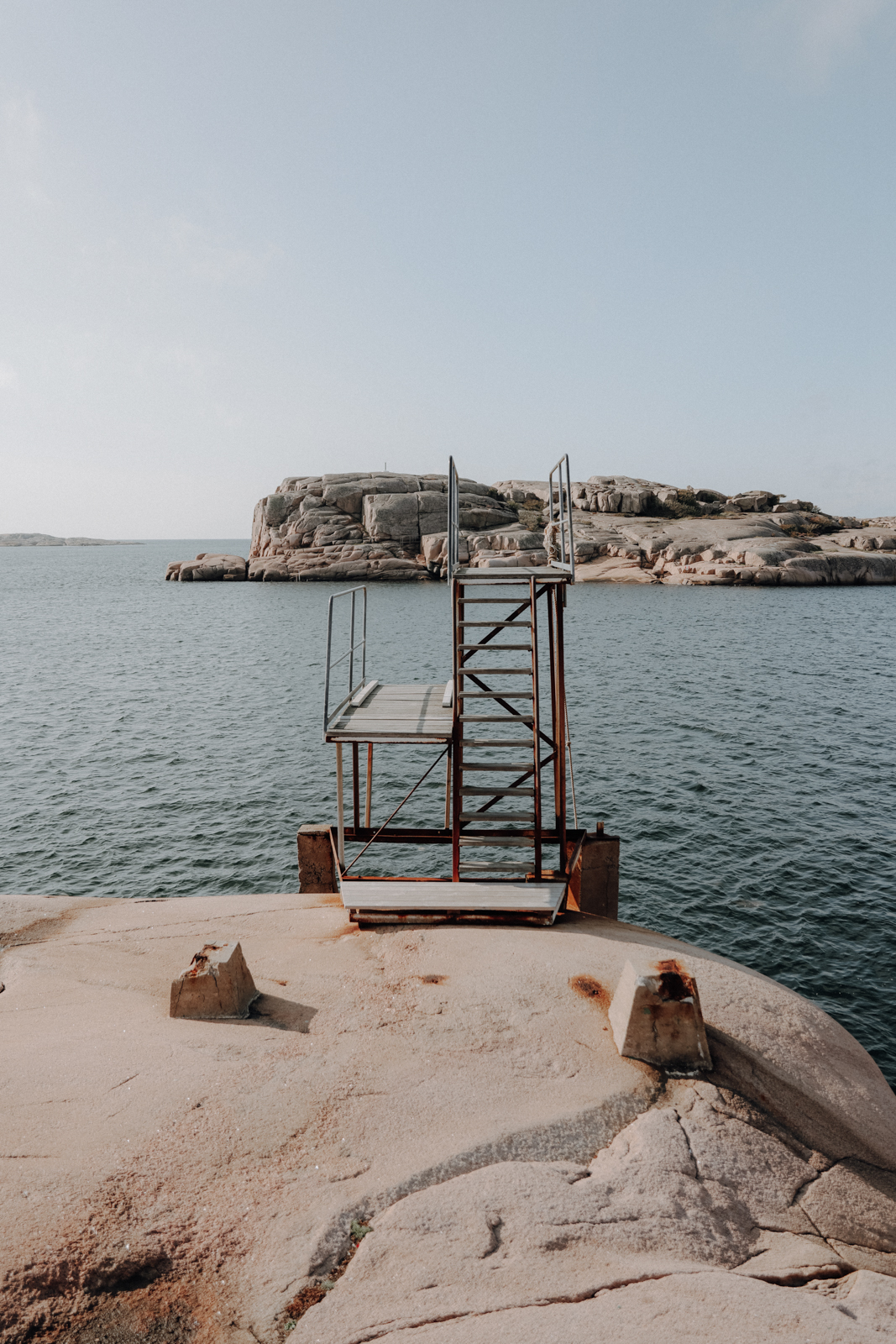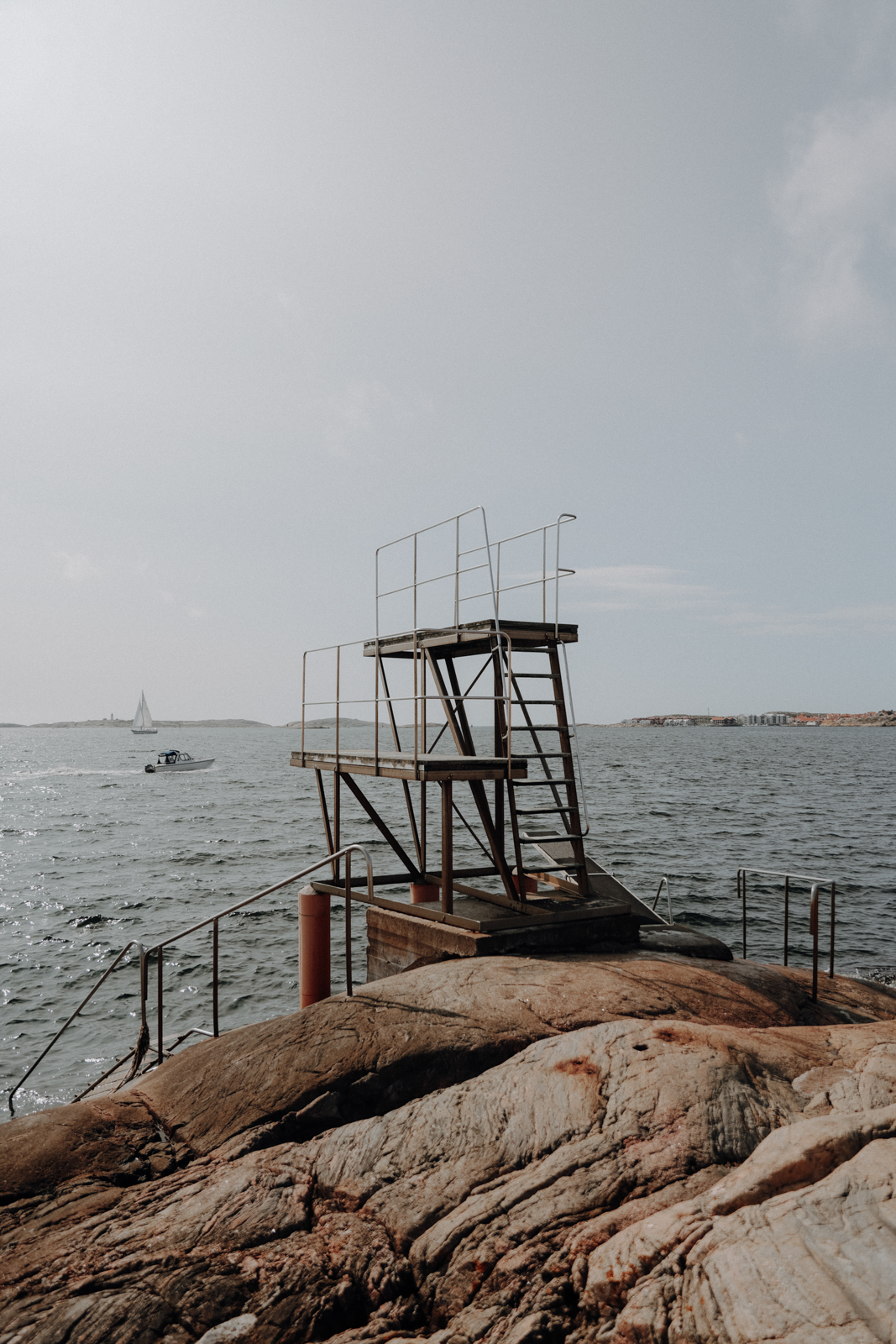 Ich habe schon viele Zimtschnecken in Schweden gegessen, doch an keine kann ich mich so gut erinnern wie die aus der Hamnbageriet in Kungshamn (und vielleicht an die Blaubeerschnecke in Sundsby Säteri). Kein Wunder, dass die Schlange vor dem Café schon mal bis zur Straße reicht! Die Bäckerei zum Anlass genommen, haben wir auch gleich die Gelegenheit genutzt, am Hafen entlang zum wenig besuchten Badeplatz samt Sprungturm zu spazieren. Und selbst, wenn Du gerade nicht in der Stimmung bist, dich ins kalte Wasser zu stürzen, dann bestimmt, um den Blick auf die vorgelagerten Schären zu genießen.