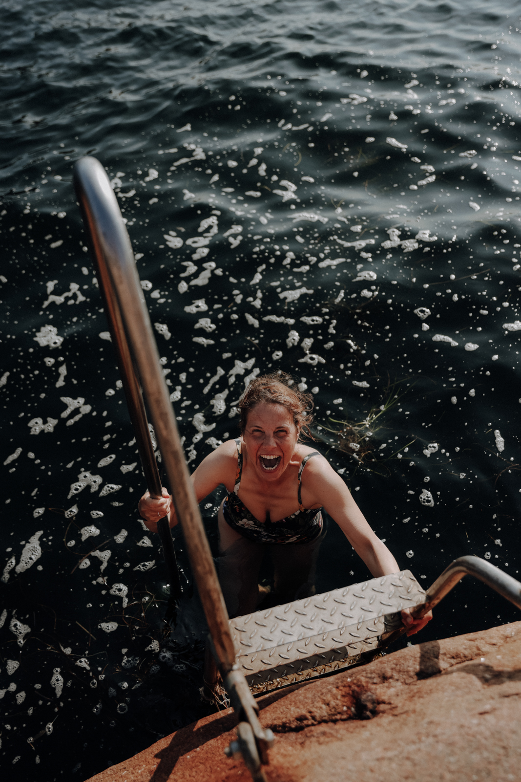 Obwohl die Rundwanderung um die Insel mit 5 km wirklich kurz ist, solltest Du trotzdem den ganzen Tag einplanen, denn es gibt viel zu sehen und entdecken! Immerzu führt der Weg über Felsen, Holzbrücken und Treppen an den Klippen auf und ab, während man die ganze Zeit aufs Wasser und die umliegenden Inseln schaut. Dabei kommt man an unzähligen Aussichtspunkten, mehreren Badestellen und sogar einem Sandstrand vorbei, an einem Selbstbedienungs-Waffel-Café und der Saunaanlage - dem heimlichen Highlight der Insel. Eintritt zur Sauna (am Südhafen gelegen) bekommst Du über die Website. Gebucht werden können jeweils zwei zusammenhängende Stunden für aktuell 10 Euro pro Person.