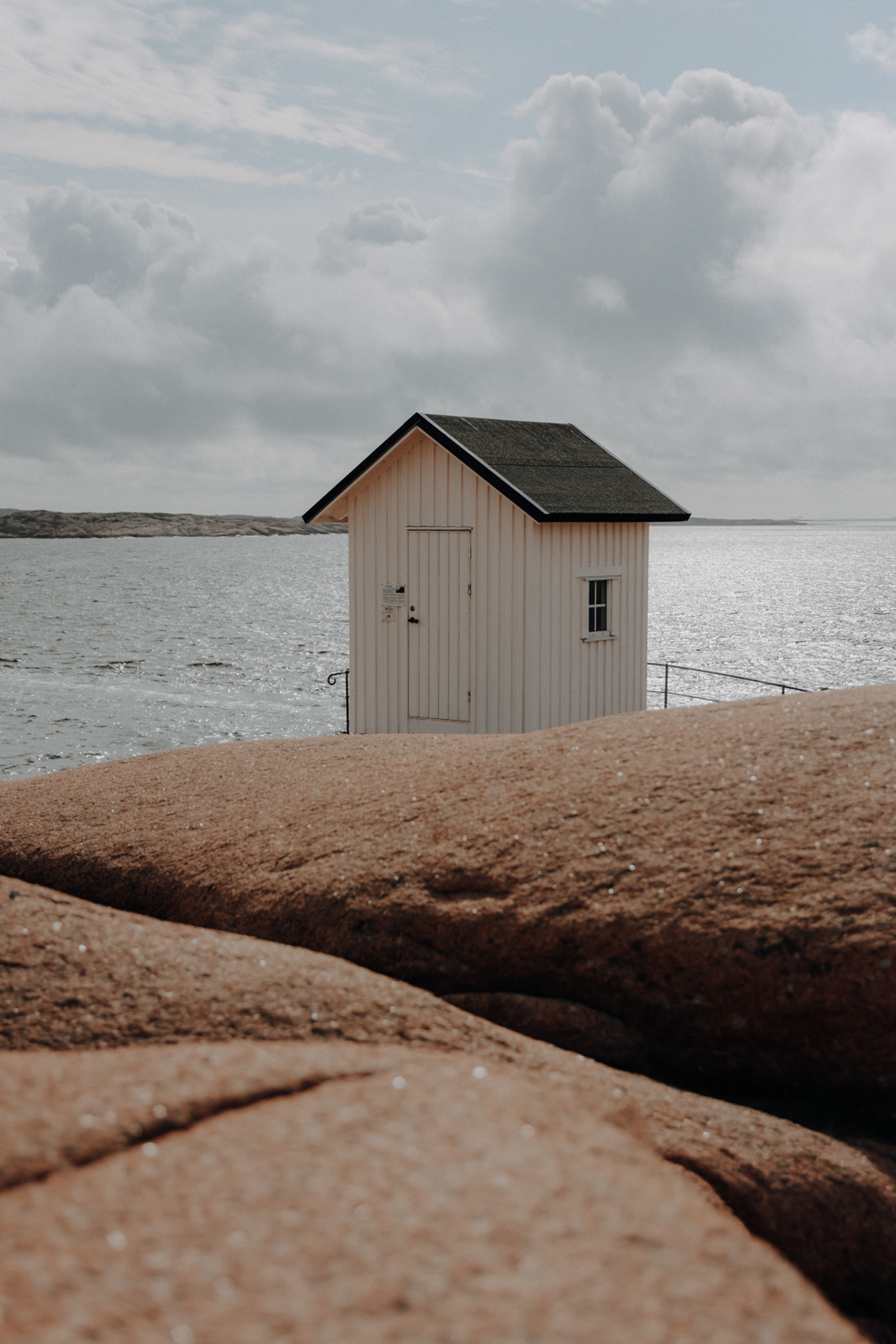 Wenn Du den Spaziergang noch um eine kleine Wanderung verlängern möchtest, findest Du in entgegengesetzter Richtung mehrere Wanderwege durch die Felslandschaft des Naturreservats Stångehuvud, wobei Du auf keinen Fall den Abzweig zu Stångehuvuds fyr verpassen solltest - einem winzigen, weißen Holzhäuschen, das einsam am Rand der Klippen dem rauen Westküstenwetter trotzt. Wenn Du mich fragst, eines des romantischsten Bilder, das Bohuslän zu bieten hat.
