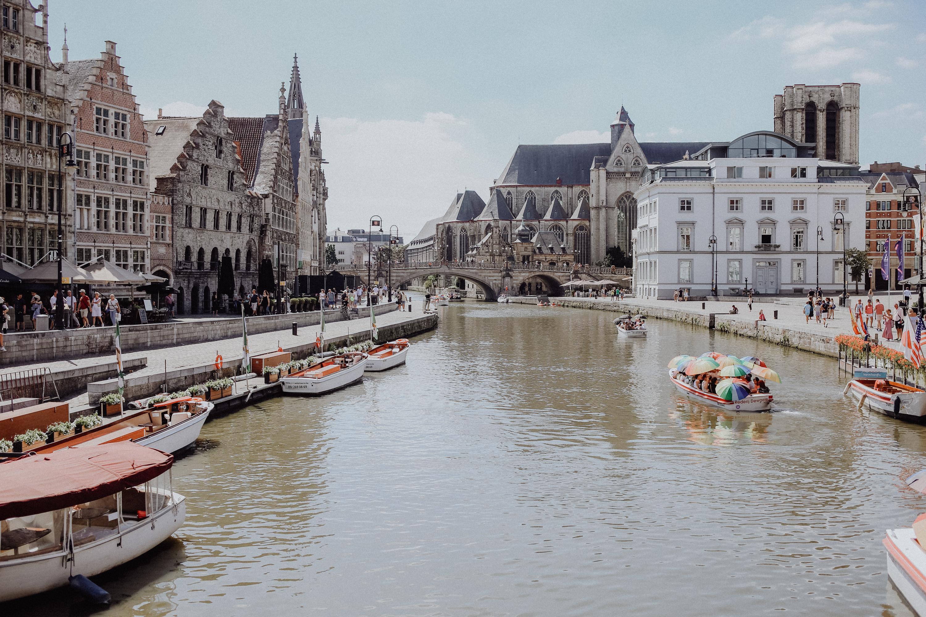 Die Stadt Gent sollte eigentlich nur ein kurzer Zwischenstop auf unserem Weg nach Frankreich sein. Eine kleine, hübsche Stadt, ein belgisches Bier am Abend draußen vor einer Kneipe - höhere Erwartungen hatten wir nicht an unseren ersten Routenpunkt. Doch was uns dann in Gent erwartete war eine echte Überraschung! Während sich im nah gelegenen Brügge, dem UNESCO Weltkulturerbe, jährlich über eine Million TouristInnen tummeln, ist Gent so etwas wie ein Geheimtipp für jede Reise nach Flandern. Denn Gent muss seine malerische Altstadt im Vergleich sicher nicht verstecken. Hunderte Fachwerkhäuser, verzierte Brücken, spektakuläre Kirchenbauten inklusive Belfried und unzählige mittelalterliche Prachtbauten werden hier von Kanälen durchzogen, die das Glitzern der Sonne reflektieren und die Stadt zu einer Oase für jeden Romantiker machen. Es hat nur wenige Minuten gedauert und schon war ich verliebt in die kleinen Gässchen, die vielen süßen Läden mit hipsterigem Vintage-Kram, Szene-Cafés und Buchläden. Anstatt also nur eine Nacht zu bleiben, blieben wir eine zweite, um uns wenigstens einen vollen Tag für die Stadt zu nehmen.