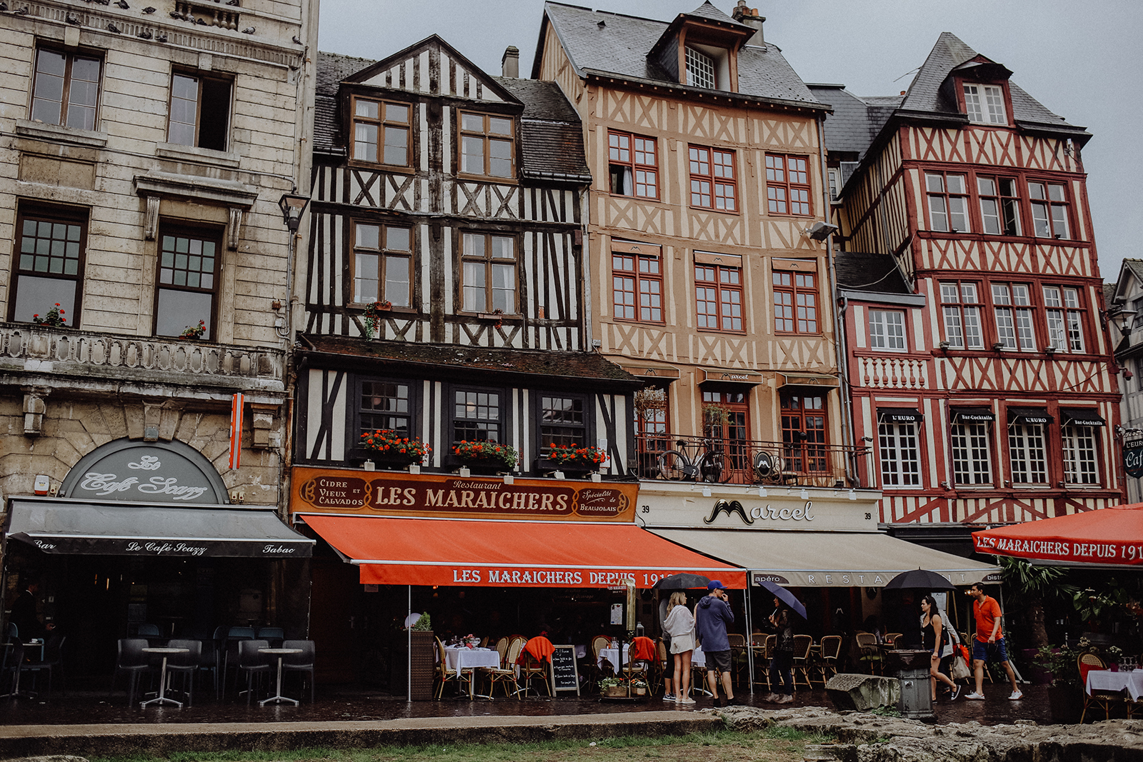 Ein Ausflug nach Rouen, der „Stadt der 100 Kirchtürme“, gleicht einer kleinen Zeitreise. In den mittelalterlichen Gassen stehen dicht gedrängt unzählige Fachwerkhäuser und führen fast unweigerlich vorbei am berühmten Uhrenturm zu der beeindruckenden gotischen Kathedrale, in der sich Richard Löwenherz auf eigenen Wunsch nach seinem Tod begraben ließ. Seit 2015 kann man außerdem die spannende Geschichte der Nationalheldin Johanna von Orleans im Historial Jeanne d'Arc entdecken. Wem die Füße vom Sightseeing weh tun, kann aber auch gemütlich durch die Fußgängezone von Café zu Café bummeln oder einen Blick in das älteste Restaurant Frankreichs am Altmarkt werfen.