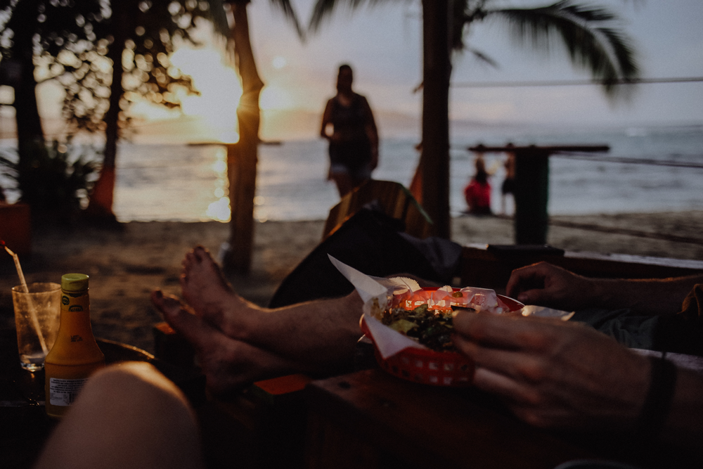 Apropos Essen… 😉 In Puerto Viejo waren wir, nachdem die Preise in Quepos so hoch waren, jeden Abend in der Bar Lazy Mon und haben Cocktails zur Happy Hour getrunken, den Bands beim Spielen zugehört oder haben Pizza Slices beim Sonnenuntergang am Strand gegessen. Absolutes kulinarisches Highlight unserer Reise war aber unser Essen im Koki Beach, einer vergleichsweise schicken Bar, für die Du schon mal dein Kleid auspacken kannst. Hier haben wir verdammt leckeres Red Snapper Filet gegessen und noch lang bei einer Karaffe Wein den Abend genossen. Gutes Frühstück bekommst Du für wenig Geld in der Bäckerei De Gustibus.
