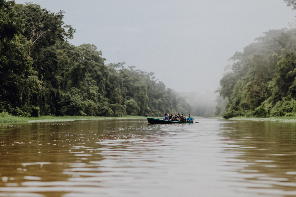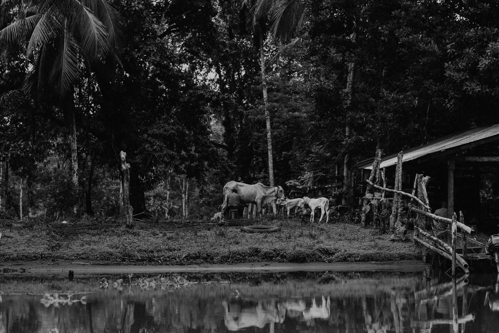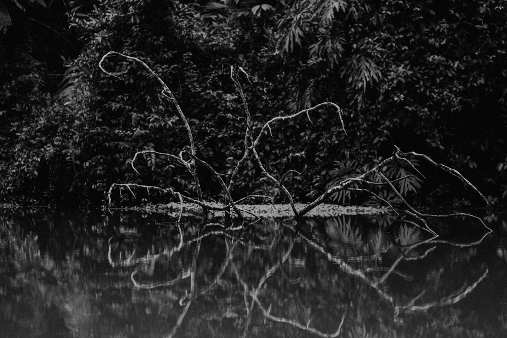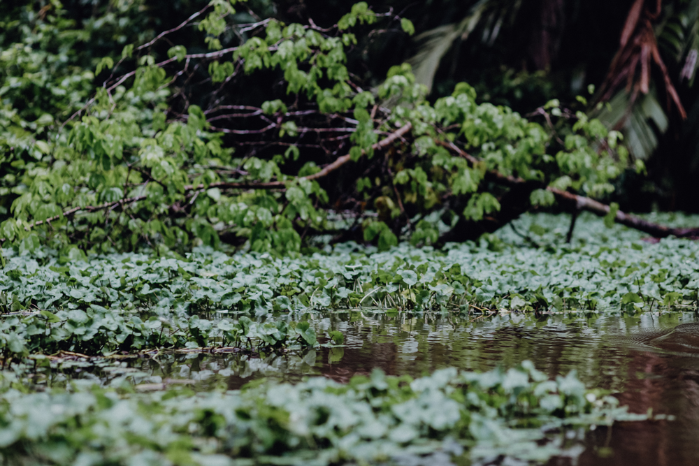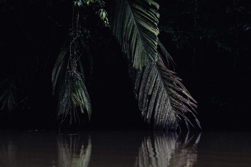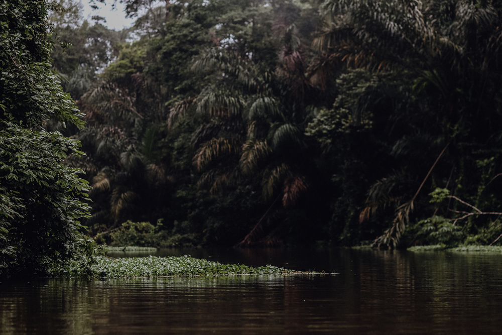 Nachdem wir nach der Nightwalking Tour ziemlich müde ins Bett gefallen sind, mussten wir am nächsten Morgen sehr zeitig aufstehen. Tortuguero ist umgeben von einem dichten Netz aus großen und kleinen Wasserkanälen, die Ufer bewachsen von Bäumen, deren riesige Blätter in Wasser hängen, als wollten sie sich von der tropischen Hitze abkühlen. Fast schon gespenstisch ragen die Palmenblätter an manchen Stellen hervor und spiegeln sich silbrig in der Wasseroberfläche.