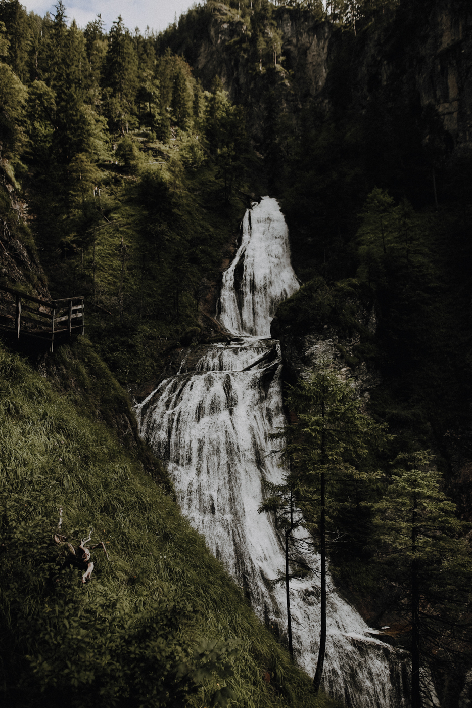 Stufe um Stufe führen steile Holzstiegen immer weiter hinauf zu den atemberaubenden Wasserfällen der Wasserlochklamm. Während der Weg zunächst noch entlang der Salza verläuft, schlängelt er sich später über zahlreiche hölzerne Brücken und Steiganlagen steil durch die schmale Klamm. Hinter jeder Biegung offenbart sich ein neues Bild mit wild fließendem Wasser, das mal laut und mal leise über die Felsen schließt. Richtig aufregend wird das Erlebnis am Ende, wenn die letzten steilen Leitern immer näher an den 37 Meter hohen Wasserfall heranführen. Unter ihm bildet sich in einem Felsbecken ein Siphonsee, der sich immer wieder in unregelmäßigen Abständen entleert – ein Mysterium, weil sich auch heute nicht berechnen lässt, wann sich der Siphonsee in die Klamm ergießt.