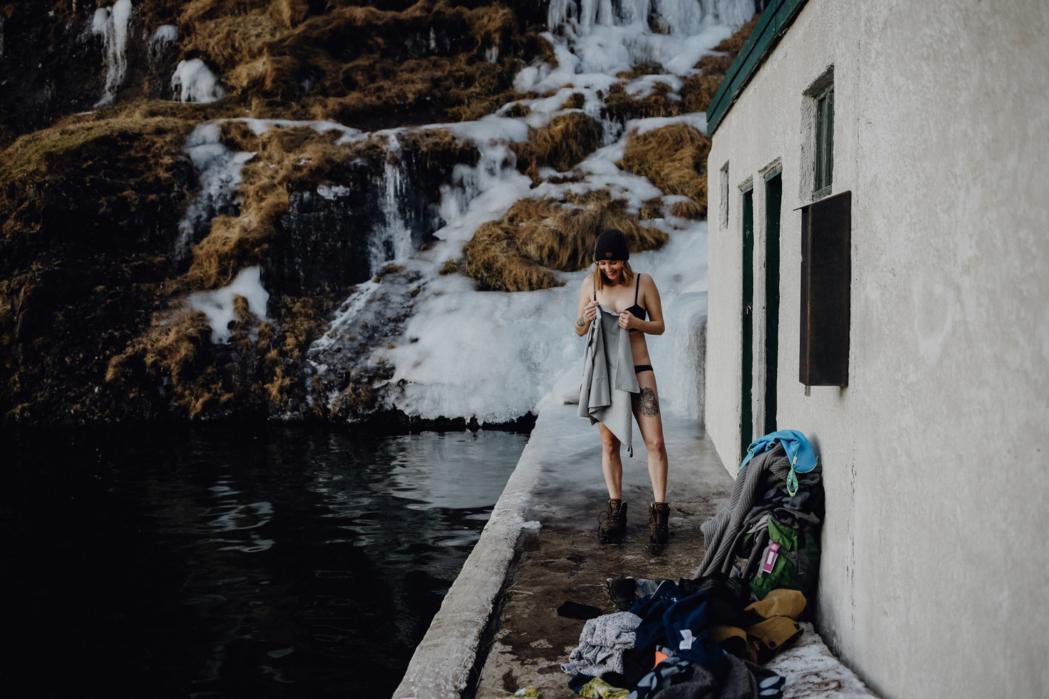 Mach Dich aber darauf gefasst, dass die Umkleidekabinen unbenutzbar eklig sind und Du dich wahrscheinlich freiwillig draußen umziehen wirst. But who cares… So ist das eben an den isländischen Quellen und ein bisschen wild fühlt man sich schon, wenn man mitten in den Bergen nackt im Schnee steht. 😉