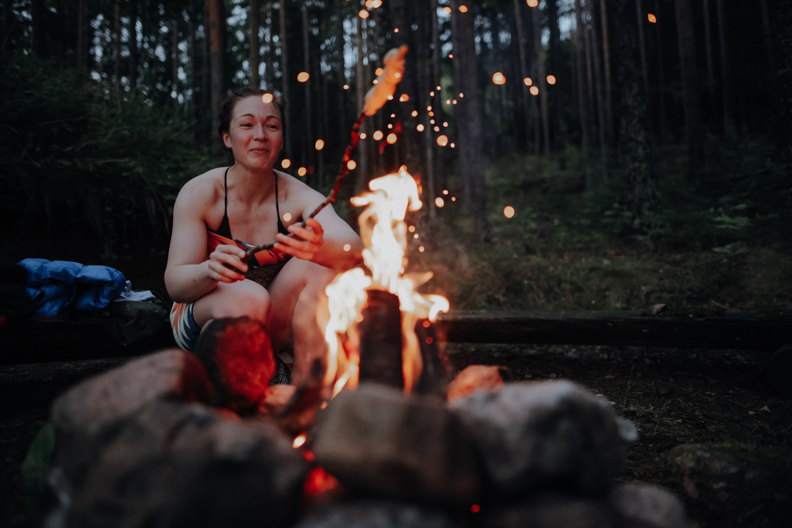 Beeren pflücken, Feuer machen, kochen, das Zelt aufbauen, Marshmallows rösten, nachts im Mondlicht schwimmen gehen oder einfach mal nur mit dem Kaffee in der Hand dasitzen und aufs Wasser schauen… für mich sind es vor allem diese Dinge, an die ich mich als erstes erinnere, wenn ich an unsere Kanutour denke. Doch niemals hätte ich so intensiv empfunden, wären wir nur mit dem Auto zum Camping gekommen. Jeden Tag zu paddeln, bei Wind und Wellen den nächsten Unterschlupf zu suchen, in den Regen zu kommen und wie die WeltmeisterInnen das Tarp aufzubauen… erst Situationen wie diese haben all die kleinen Dinge zu dem großen Abenteuer gemacht, das wir uns so sehr herbeisehnten. Denn wäre es nur einfach, wäre man nicht mit dem Wasser und den Wäldern allein und auch der “Sommer in Schweden” wäre kaum ein so verheißungsvolles Wort.