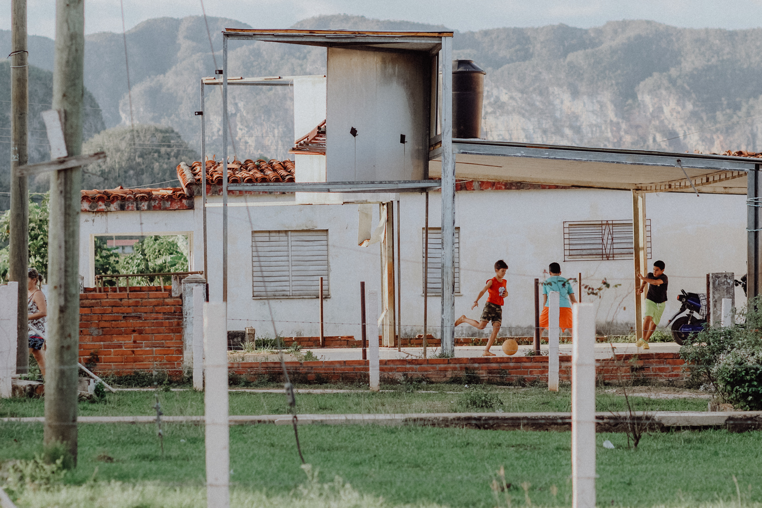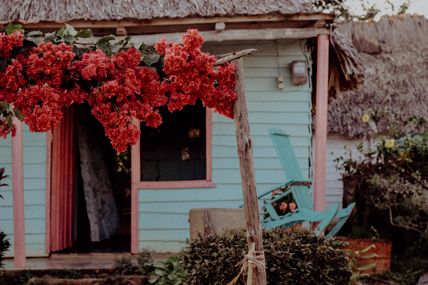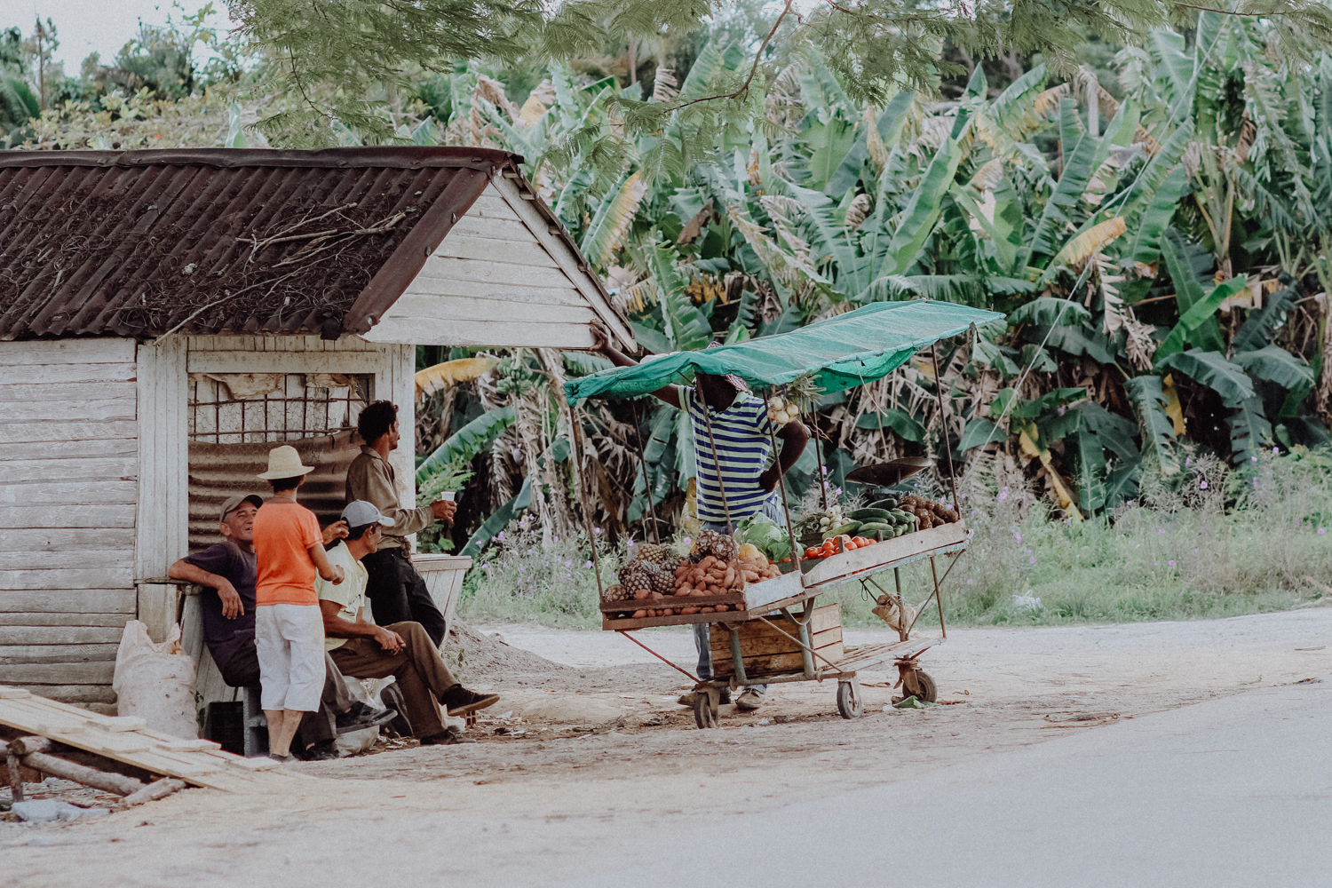 Mindestens genauso spannend wie die Wanderung ist ein Spaziergang durch die kleine Stadt. Hier in Viñales gibt es keine Hotels und abgesehen von einem kleinen Viazul Büro und dem Markt auch sonst keine touristischen Einrichtungen. Hier gibt es nur das typisch kubanische Leben. Einen Mann, der seinen Esel spazieren führt, Menschen, die mit einem Traktor, der zum Bus umfunktioniert wurde von Arbeit kommen, Ochsen- und Pferdekarren neben Oldtimern, die Pferdebesitzer und Bauern, spielende Kinder und Frauen in Schaukelstühlen vor den bunten Fassaden ihrer Häuser.