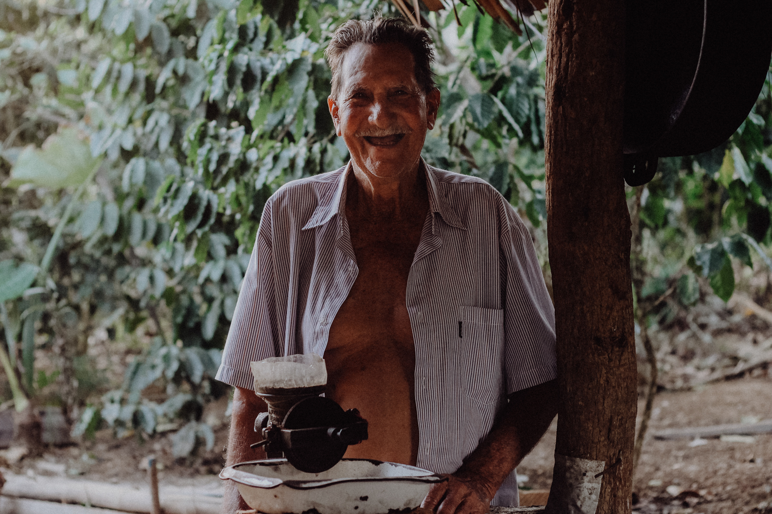 Mein Guide erklärte ihm, dass ich gern seine kleine Plantage sehen würde und seinen Kaffee probieren möchte. Mit noch breiterem Grinsen holte er ein paar geröstete Bohnen hervor. Während ich durch die Mango-, Ananas-, Kaffeepflanzen seiner kleinen Plantage hinter dem Haus schlich, mahlte er die gerösteten Bohnen in seiner Kaffeemühle und übergoss das feine Pulver mit Wasser. Heraus kam ein starker Espresso, fast süßlich und so lecker, dass ich ihn heute fast noch schmecke, wenn ich nur daran denke.