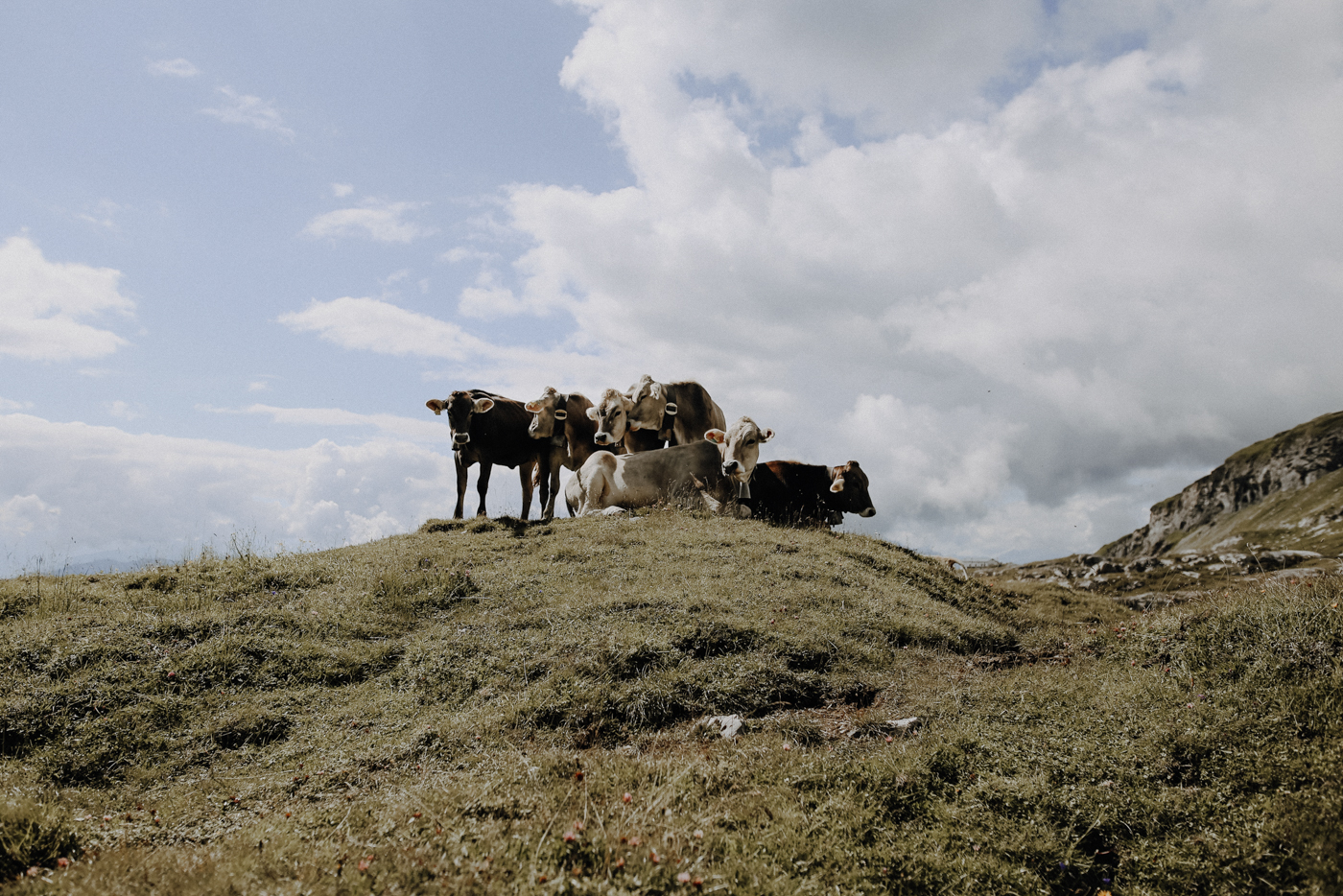 Nachdem wir zunächst den Sessellift nach Foppa und von dort nach Naraus genommen hatten, wanderten wir von der Bergstation eine knappe Stunde entlang grüner Bergflanken samt Blümchen und grasender Kühe. Von einem Schritt zum nächsten, wich die Bergflanke jedoch einer weiten Ebene und eröffnete uns den spektakulären Blick auf den Segnesboden und die neun schroffen Gipfel der Tschingelhörner. Während hinter den Felsen ein riesiger Wasserfall tobt, ergießt er sich am Boden fast schon sanft in die Flachmoore der Ebene und verändert seine Wasserläufe so, dass sich jeden Tag gänzlich neue Muster ergeben. Folgt man dem Weg noch etwas weiter in den Segnesboden, kann man zudem das Martinsloch entdecken - ein 19 mal 22 Meter großes Loch mitten im Gestein der Tschingelhörner. Zweimal im Jahr fällt hier das Licht der Sonne direkt durch das Loch und scheint auf den Kirchturm von Elm - ein Naturspektakel, das natürlich auch viele Schaulustige und Fotografen anlockt.