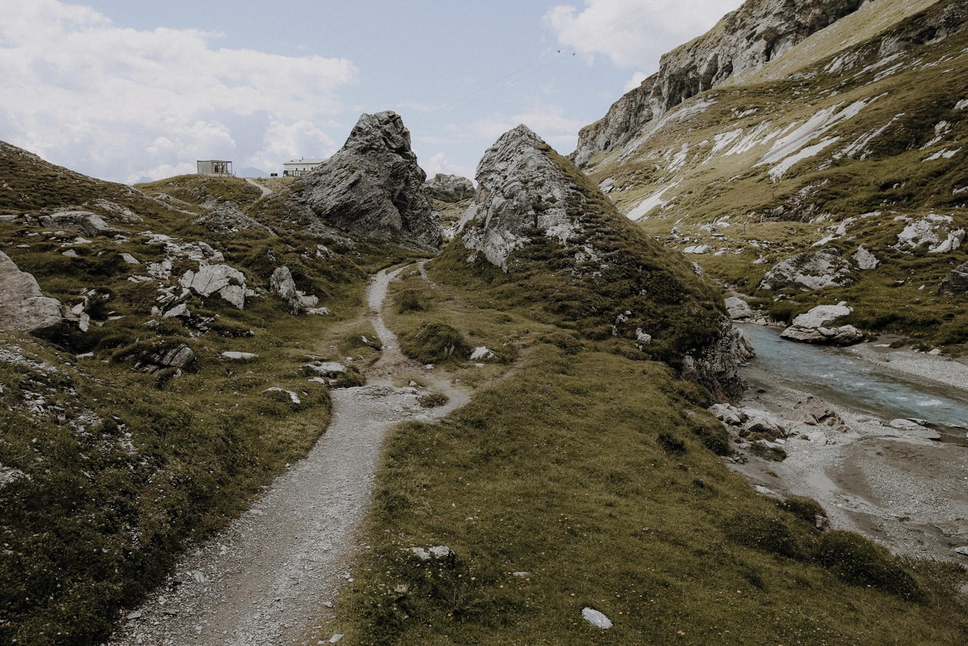 Unterwegs hielten wir immer wieder an, um die Füße im erfrischenden Wasser baumeln zu lassen oder für ein paar Minuten ganz bewusst dem Rauschen der vielen Wasserfälle zu lauschen. Und natürlich konnten wir auch nicht widerstehen, als das Bergrestaurant Startgels mit seinen einladenden Terrasse vor uns auftauchte… Hier habe ich die mit Abstand besten Älplermagronen bekommen, die ich je gegessen habe! Selbst, als wir längst Flims wieder erreicht hatten, konnte ich nicht aufhören von ihnen zu schwärmen!