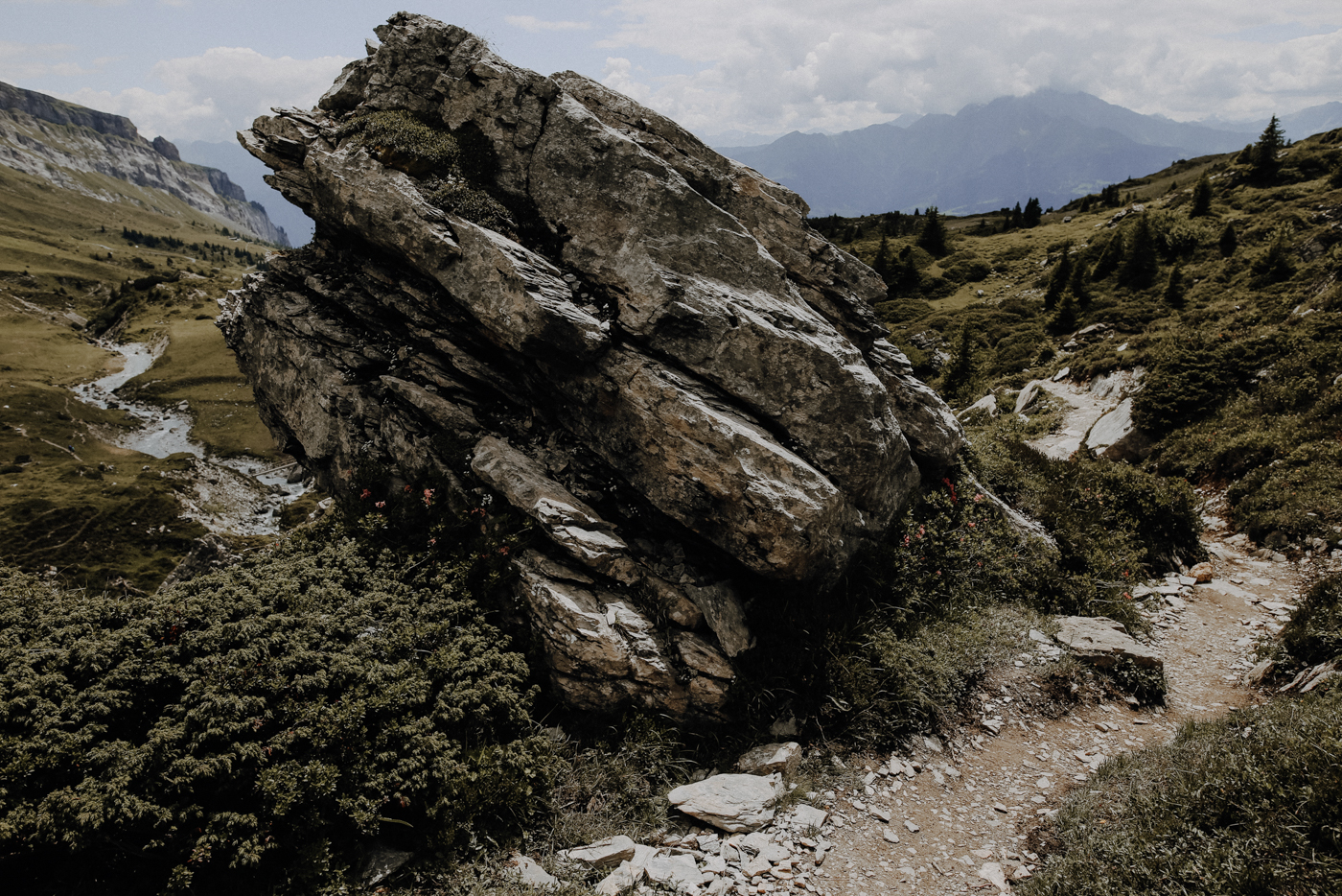 Hast Du dich eigentlich schon mal gefragt, wie eigentlich die Alpen entstanden sind? Jedes Mal, wenn ich inmitten der riesigen Felsmassive stehe, versuche ich mir vorzustellen, wie es hier vor Millionen von Jahren ausgesehen haben muss, als die Erde bebte, sich das Gestein aus dem Meer heraus unter gewaltigen Kräften fast 30 Kilometer in die Höhe faltete, sich wieder senkte, brach und schließlich die Berge zurückließ, die wir heute durchstreifen. Oder wie die Landschaft wohl ausgesehen haben muss, als sich vor 20.000 Jahren die Gletscher der letzten Eiszeit hier entlang schoben und die saftig grünen Wiesen unter ihrer bitterkalten Schwere begruben. Sicher lassen sich all diese Dinge in Büchern nachlesen, doch habe ich bisher noch nirgendwo eine so klare Vorstellung von der Entstehungsgeschichte der Alpen bekommen, wie hier in der Tektonikarena Sardona.