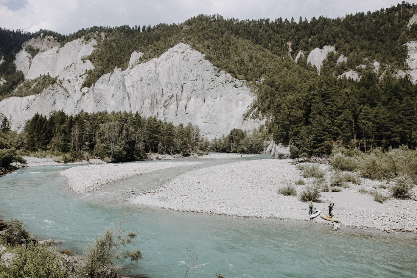 Nachdem mich am ersten Tag bereits die Aussicht von Il Spir in die Rheinschlucht in ihren Bann gezogen hatte, konnte ich es kaum erwarten auch diese einzigartige Facette der Laaxer Berglandschaft zu erkunden - auch wenn das bedeutete, die Berge an diesem Tag nur von unten zu sehen. Die Rheinschlucht, auch Ruinaulta genannt, wird nicht umsonst als der “Little Swiss Canyon” bezeichnet! Zwischen den hohen und schroffen Felswänden mit ihren bizarren Formen und Höhlen fließt in fast schon surreal strahlendem blau der Rhein in ausladenden Linien durch das Tal.