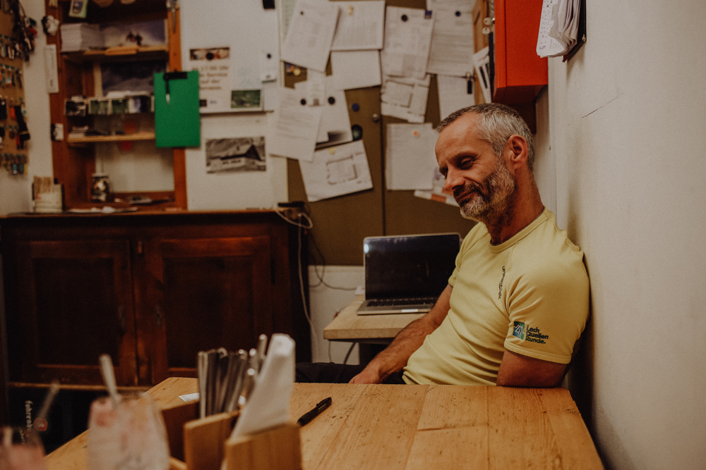 Während ich noch immer mit flauem Gefühl in der Magengegend am Tisch sitze und meinen Notizblock hervorkrame, um ein paar Informationen für meinen Beitrag zu sammeln, habe ich noch keine Ahnung, dass ich in den nächsten Stunden einen so tiefen Einblick in das Leben eines Hüttenwirts bekommen werde, wie wahrscheinlich wenige fremde Großstädter zuvor.