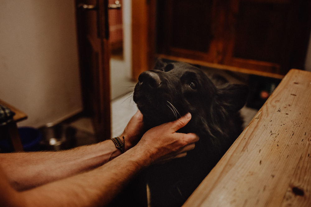 Wenn Thomas erzählt, wirkt er kaum so hart, wie seine Arbeit es ihm abverlangt zu sein. Vor allem nicht in den Momenten, wenn Grinch, sein schwarzer zotteliger Hund, sein “Ein und Alles”, unter dem Tisch hervorkommt, um sich eine Streicheleinheit zu holen. Seit knapp zehn Jahren begleitet Grinch seinen Halter. Gemeinsam haben sie eine Vielzahl an Kursen und Ausbildungen absolviert, um der Lawinenhundestaffel der Bergrettung Tirol beizutreten, bevor Grinch an der unheilbaren Augenkrankheit Schäferhundkeratitis erkrankte. Seitdem darf Grinch “einfach nur Hund sein” – Begleithund statt Suchhund und Freude für manchen Wanderer, der sich über die Spezialsonnenbrille des Hundes amüsiert.