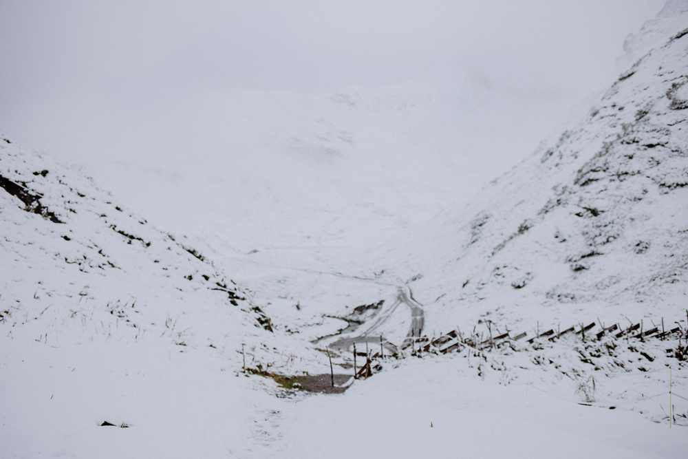 Am Ende des Abends weiß ich mehr über das Leben auf der Hütte, als über die Lechquellenrunde, über die ich doch eigentlich schreiben soll. Als wir müde in unser schmales Doppelstockbett fallen, schneit es draußen. Anfang September. Am nächsten Tag würden wir in eisiger Kälte und 20 Zentimeter Neuschnee die erste Etappe der Lechquellenrunde laufen – mit einer gänzlich neuen Perspektive auf die Wege, die Hütten und ihre Wirte.