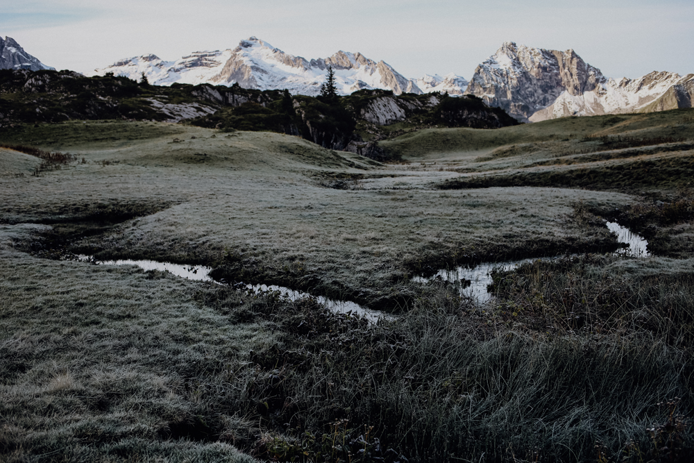 Am Anfang war Schnee... Anfang September. Wenn Du schon mal in den Alpen unterwegs warst, weißt Du, dass das keine Seltenheit ist. Wir auch. Kalt wars trotzdem. Doch egal, wie frustrierend es war, am ersten Tag bei minus 3 Grad aus der Hütte zu treten, war es trotzdem ganz zauberhaft zu sehen, wie die Schneeflocken die Berge eingeschlossen haben.