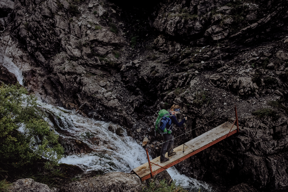 Von der Göppinger zur Freiburger und weiter zur Ravensburger Hütte mussten wir in den folgenden Tagen (leider) die leichte Schlecht-Wetter-Route nehmen. In der dritten Nacht haben sich die Wolken zugezogen und sich bis auf wenige Sonnenstunden nur noch selten gelüftet. Wirklich schlimm war das aber nicht: Selbst die Schlechtwetter-Alternative war verdammt schön zu wandern und - zumindest wenn die Wolken aufgerissen sind - hat es auch nicht an spektakulären Aussichten gemangelt. Auf dem Weg zur Freiburger Hütte kommst Du so außerdem am Älpele vorbei - dort gibt es Käse- und Speckbrote und frische Rohmilch. Ein perfektes zweites Frühstück sozusagen 😉