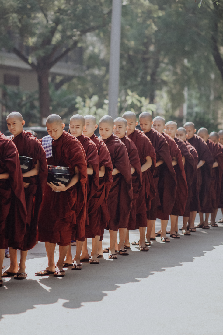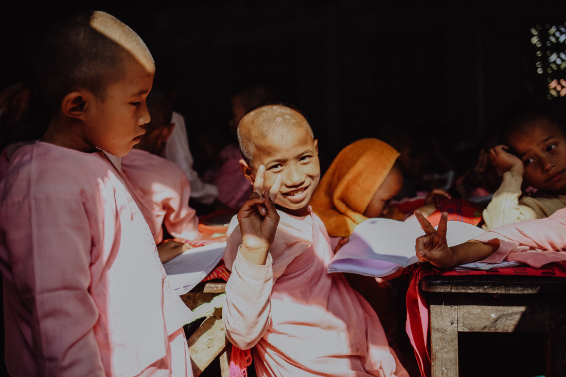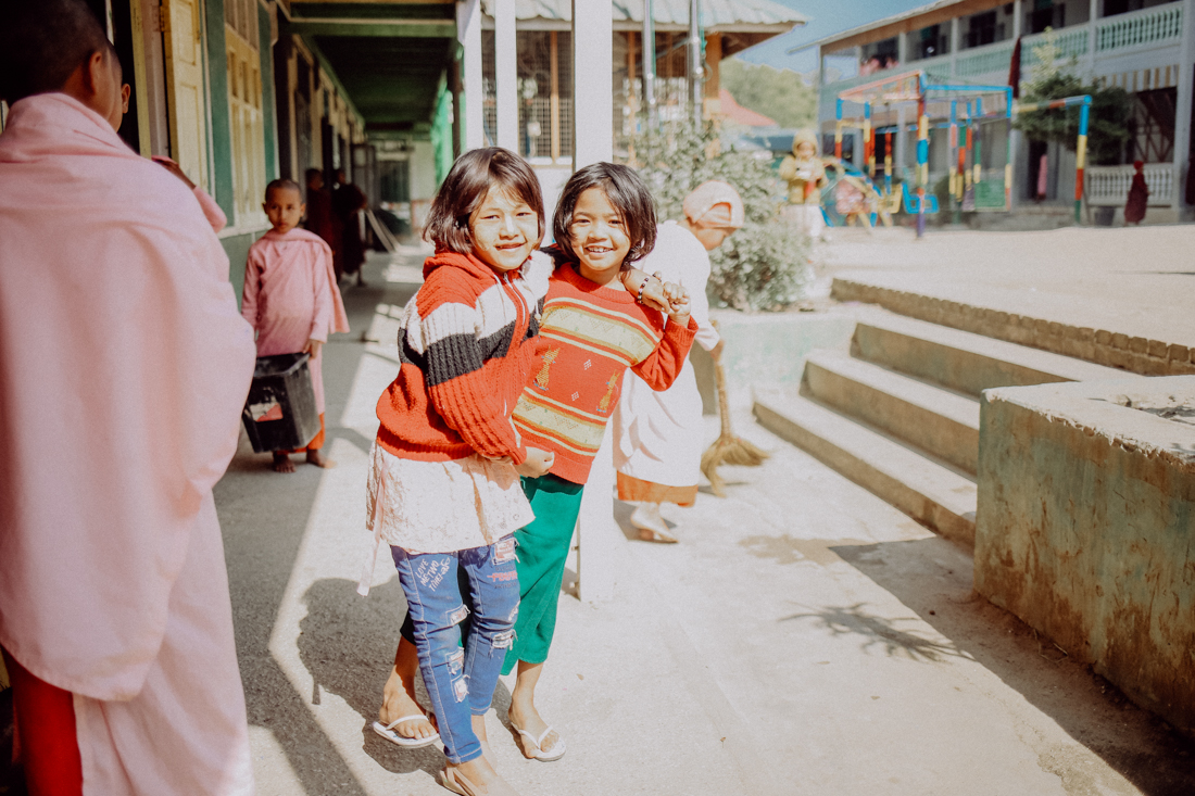 Zusätzlich zu diesen beiden Pagoden, zeigte uns unser Fahrer das Tilawkaguru Kloster, wo wir das erste Mal sahen und erlebten, wie die Mönche sich in einem durchaus spirituellen Akt jeden Tag in einer langen Reihe zum Mittagessen anstellen und dort das gespendete Essen entgegennehmen. Während die Stimmung am Kloster ganz still und andächtig war, ging es wenige Meter weiter an der Aung Myae Oo Klosterschule richtig laut und ausgelassen zu, da hier über 2500 (Waisen)kinder aus vornehmlich armen Familien und zur Schule gehen. Die Projektleiter und Volontäre haben uns gern in Empfang genommen, uns den Kindergarten und die Klassenzimmer gezeigt und viel über ihre Arbeit erzählt. Bei all den tollen Erlebnissen dieses Tages war es aber vor allem der Besuch der Schule, der mich am meisten berührt hat und mir sicher nachhaltig in Erinnerung bleiben wird.