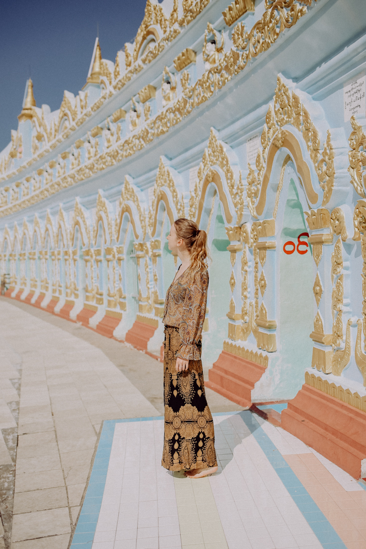 Die wohl bekannteste Sehenswürdigkeit ist dabei die tausendfach auf Instagram gezeigte weiße Hsbinyume Pagode mit ihren wellenförmigen Terrassen, auf denen man entweder selbst für die spektakulären Fotos posiert oder mit etwas Glück die malerische Szenerie zu Augen bekommt, wenn die Mönche mit ihren großen Papierschirmen über die Mauern spazieren.