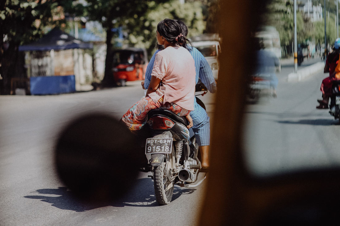 In Mandalay selbst ist der Verkehr mitunter so dicht, dass es wie in den meisten südostasiatischen Großstädten wenig Sinn macht, sich auf eigene Faust zu bewegen, wenn einem das Leben lieb ist 😀 Besser sind innerhalb der Stadt die günstigen Tuktuks und für längere Ausflüge die Taxis. Gleich am ersten Tag haben wir glücklicherweise Koyar kennengelernt – einen wirklich tollen Taxifahrer und Guide mit richtig guten Englischkenntnissen. Von ihm haben wir uns bei einer ganztägigen Tour Sagaing, Inwa und Amarapura zeigen lassen, wobei er uns an den ein oder anderen unbekannten Ort geführt hat, wo sonst nur wenige Touristen hinkommen.