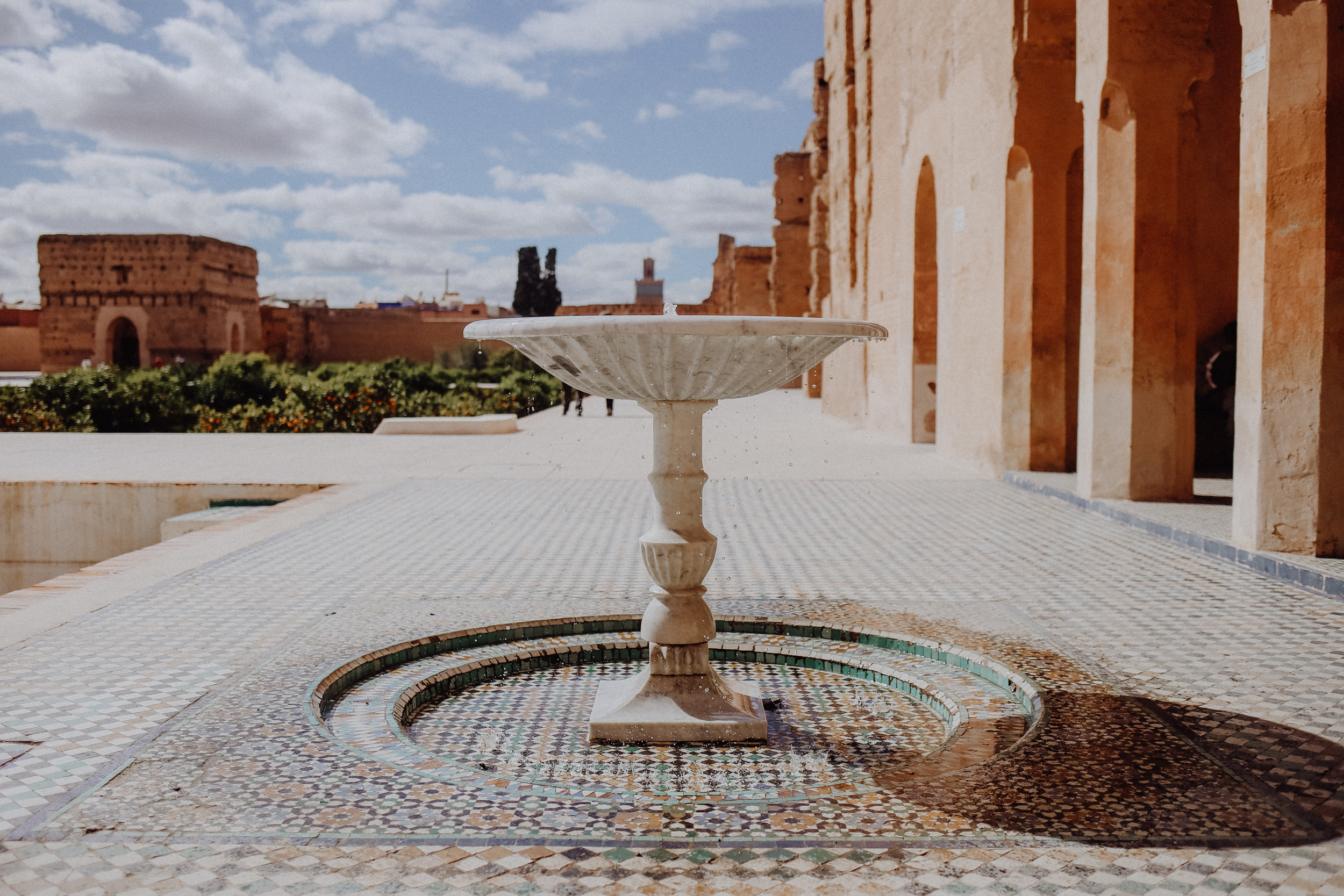 Umso schöner und wohltuender wirken dann die Sehenswürdigkeiten. Wie Ruheoasen liegen Gärten, Paläste und Moscheen in der Stadt, als wären sie nur dafür gebaut, rastlosen Reisenden ein paar Minuten Entspannung in Welten aus 1001 Nacht zu gönnen, bevor man sich mit einem frisch gepressten Orangensaft in der Hand wieder in die heißen, wuseligen Straßen der Medina begibt.