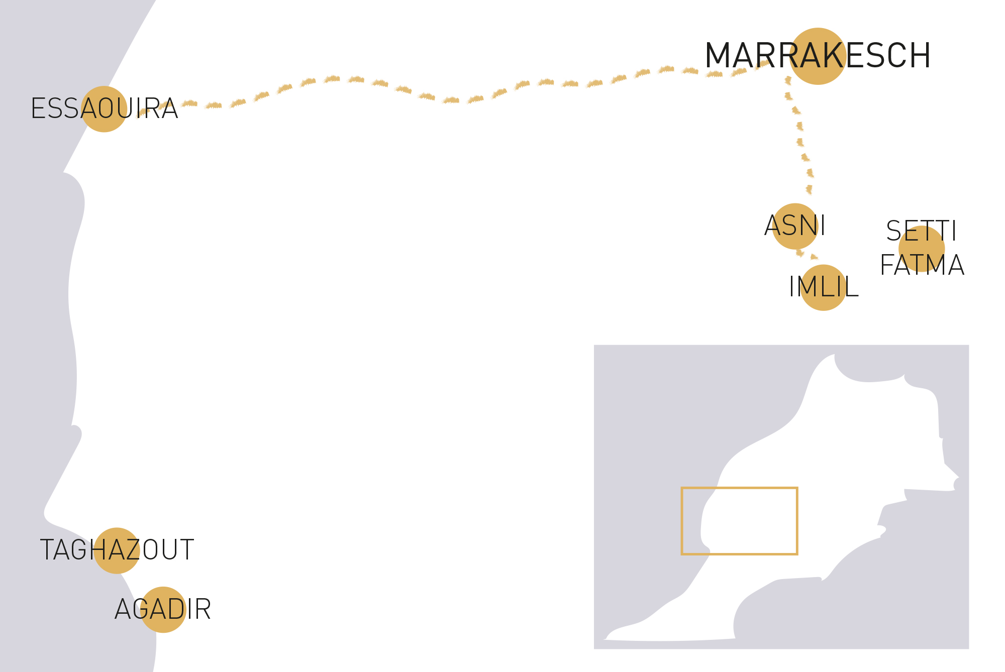 Im folgenden Blogbeitrag findest Du Beschreibungen meiner drei Reiseziele in Marokko, kompakte Informationen zur jeweiligen Anreise, zu Unterkünften und eine Empfehlung, wie viele Tage sich an diesem Ort (bei wenig Zeit) lohnen. Zusätzlich habe ich bereits einen Reise-Guide zu Marokko mit allen wichtigen Infos veröffentlicht, die Du für eine Marokko-Reise benötigst. In Kürze erscheinen dann auch noch die ausführlichen Beiträge zu Imlil, Essaouira und Marrakesch.