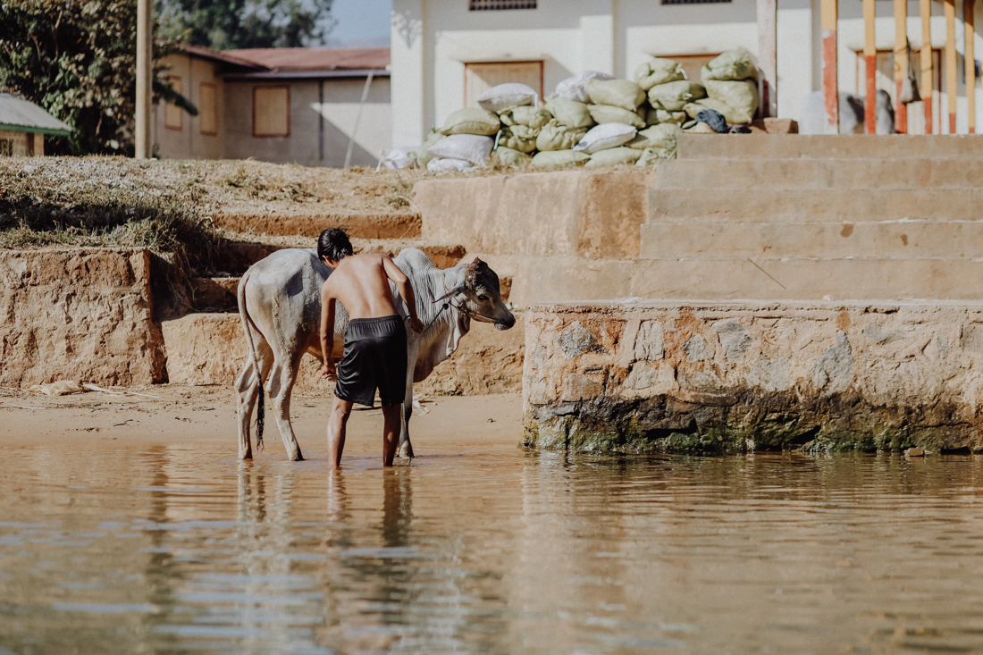 Entgegen aller Erwartungen haben wir uns in keiner der Werkstätten in einer Situation wiedergefunden, in der wir uns dazu genötigt gefühlt hätten, etwas zu kaufen. Wir wurden weder in Verkaufsräume gedrängt noch hatten wir ein schlechtes Gewissen, als wir mit leeren Händen zurück zum Boot gegangen sind. Nichtsdestotrotz fand ich den Schmuck der Silberschmieden so schön, dass ich mir einen Ring mit einem typischen Shan-Motiv gekauft habe. Die kleine kreisrunde Scheibe, spiralförmig gewickelt aus einem feinen Silberfaden mit einer kleinen Kugel in der Mitte, ist das Symbol des Mondes und tatsächlich so an keinem anderen Ort in Myanmar zu finden.