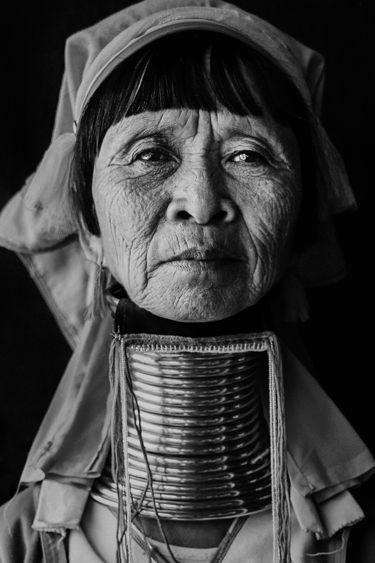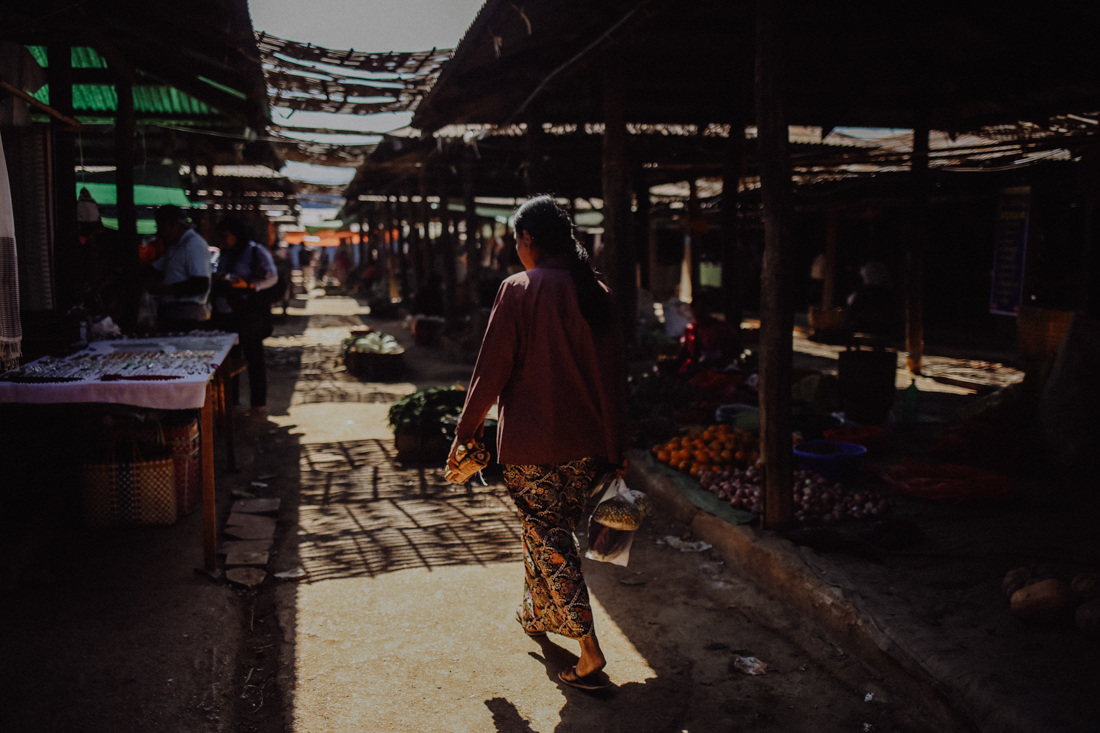 Etwas befremdlich ist nur, dass es neben den Padaung Frauen, denen man am Inle See vornehmlich in den Webereien begegnet, auch einen speziellen Foto-Spot gibt, an denen sich eine junge und eine ältere Frau gegen Geld fotografieren lassen. Viele jüngere Frauen lehnen die Fortführung der Tradition wegen der offensichtlichen gesundheitlichen Risiken ab… die Vorstellung, dass das lukrative Geschäft mit den Fotos dazu führen könnte, dass junge Frauen trotz ihrer Bedenken die Ringe tragen könnten, gefällt mir überhaupt nicht. Deshalb ärgere ich mich auch sehr, dass ich das “Geschäftsmodell” erst bemerkt hatte, als ich eine der Frauen (das Bild in schwarz-weiß) bereits um ein Foto gebeten hatte. Vielleicht ist es deshalb besser, das Geschäft nicht weiter zu befeuern und nur authentische Situationen zu fotografieren (anderes Bild).
