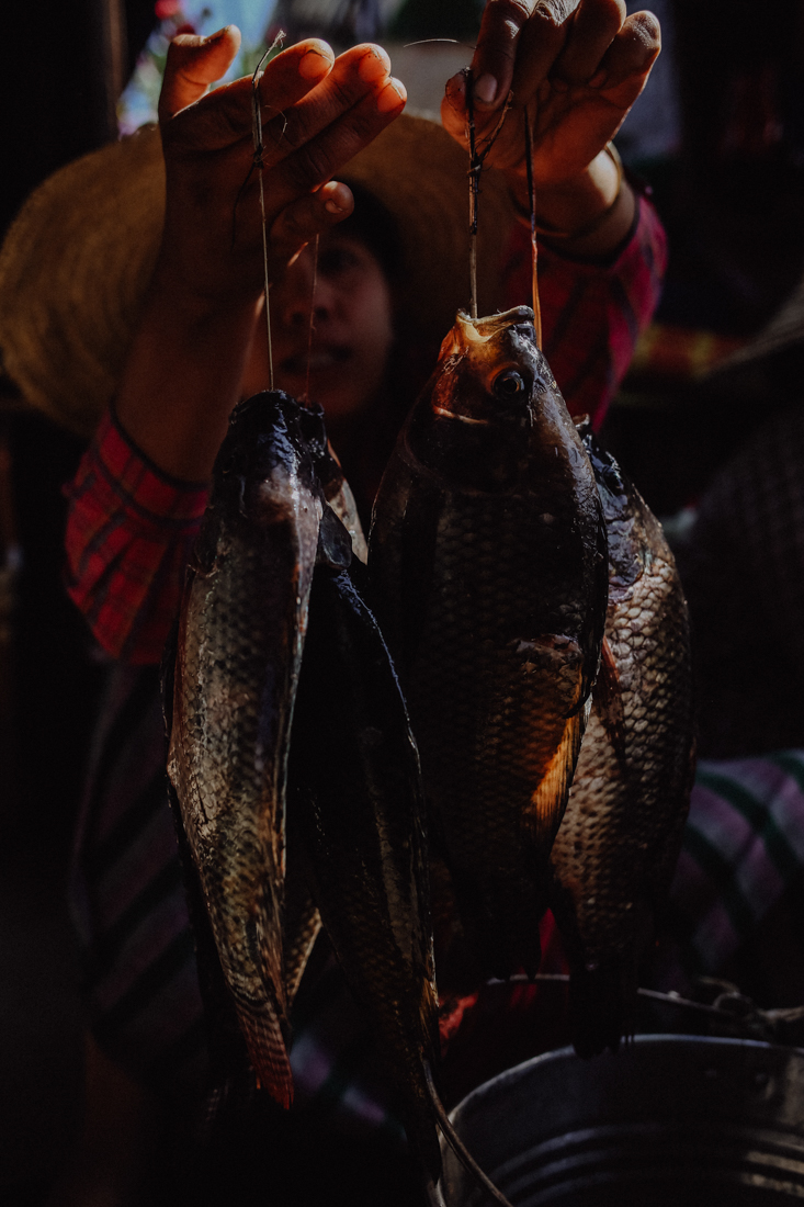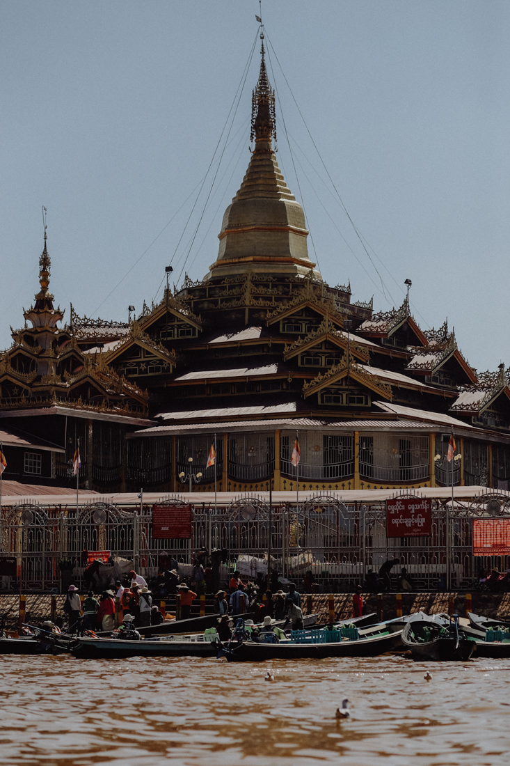 Ein weiterer spannender Stop während der Bootstour ist die Phaung Daw Oo Pagode. Ganz ähnlich, wie man es aus Venedig kennt, erhebt sich der imposante Bau aus dem Wasser und ist umgeben von unzähligen der langen schmalen Boote, die hier anlegen. Viel spannender als die Pagode selbst fanden wir jedoch das Treiben auf dem Wasser und den Markt hinter der Pagode. Am Inle-See rotiert ein 5-Tages-Markt durch fünf verschiedene Städte und Dörfer. Am Tag unserer Tour fand er gerade hinter der Pagode statt und es hat uns sehr viel Freude gemacht, an den Ständen vorbeizuspazieren und die Fischer zu beobachten, wie sie mit ihrem frischen Fang ankamen.