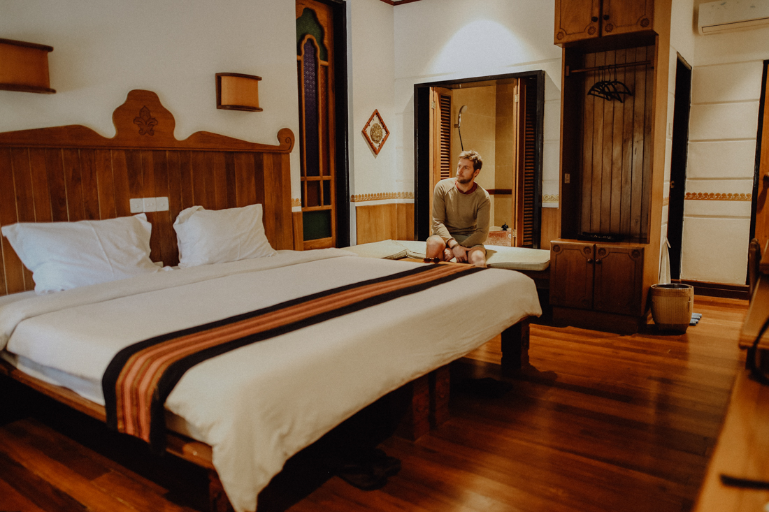 Im Amazing Nyaung Shwe hatten wir ein großzügiges und wirklich schick eingerichtetes Zimmer samt einer kleinen Terrasse mit Liegestühlen direkt vor der Tür. Ganz besonders hübsch fanden wir das offene Bad mit einer großzügigen Marmorwanne und einem Wasserhahn in Form eines großen Elefanten aus Messing. Es ist zwar nicht so, dass ich bei der Wahl meiner Unterkünfte auf Details wie diese wert lege, doch jetzt, da ich mir schon mal von einem Elefanten die Haare waschen lassen konnte, war ich darüber auch nicht gerade unglücklich 😀 Doch ganz egal, ob Du nun auch auf solchen Schnickschnack stehst oder nicht, können wir Dir das Hotel wärmstens empfehlen.