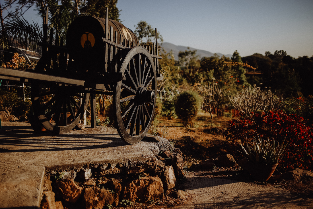 Da die meisten Bootstouren bereits am Nachmittag enden, bleibt immer noch ein bisschen Zeit für Entdeckungen in und um Nyaung Shwe. Nach unserem verspäteten Mittagessen in der Bamboo Hut fuhren wir deshalb mit dem Fahrrad in etwa 25 Minuten zum Red Mountain Estate. Das Weingut liegt malerisch in den Hügeln, umgeben von Reben und blühenden Bäumen. Von hier hatten wir beim Sonnenuntergang einen traumhaften Blick über die Landschaft und konnten dabei zusehen, wie die Sonne den Himmel in die schönsten Orange- und Rosatöne färbte, bevor sie schließlich hinter den Bergen verschwand.