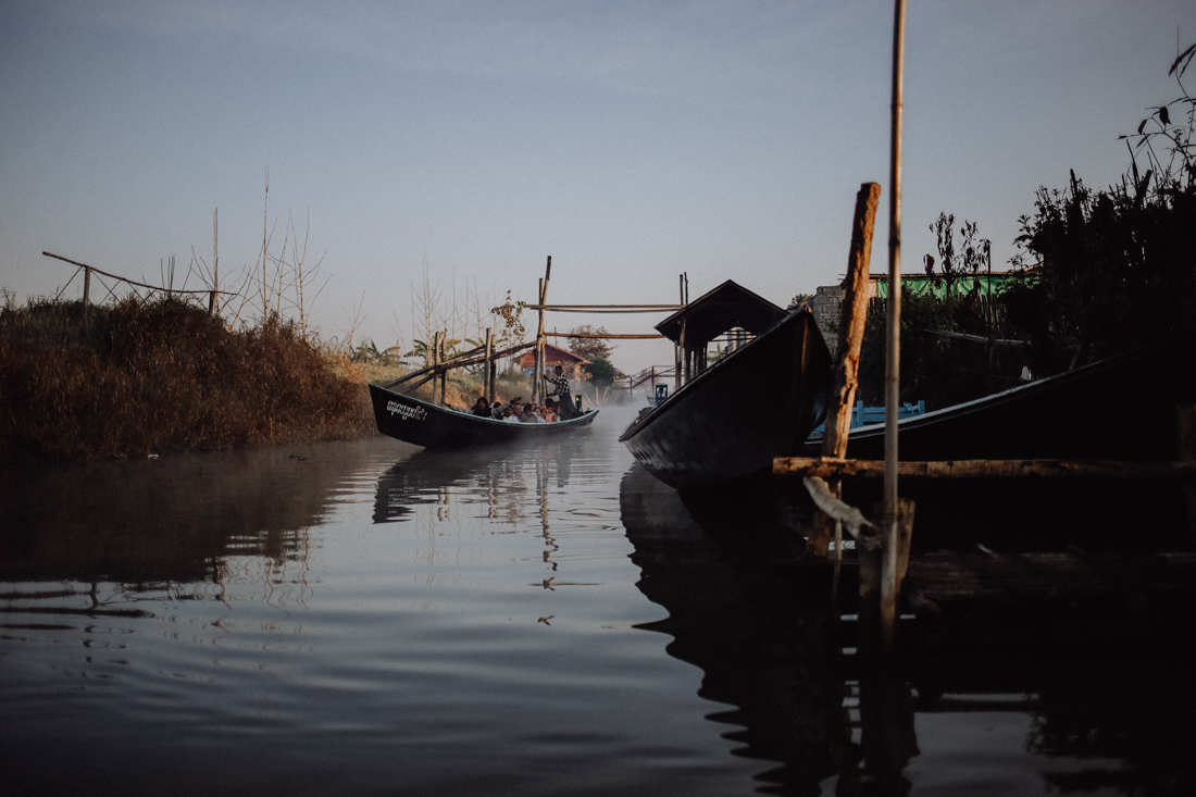 Die Fahrt buchst Du dabei entweder an deinem Hotel oder bei den Bootsfahrern selbst. Die findest Du in der Regel direkt beim Anleger an der Teik Nan Brücke, wenn sie nicht vorher Dich finden. Achte bei der Buchung aber auf jeden Fall darauf, dass deine Bootsfahrt auch einen Stop in Inthein beinhaltet. Das bedeutet zwar ein kleinen Umweg, ist aber tatsächlich das Highlight der Tour. Für die sechsstündige private Tour im Langheckboot zahlst Du ca. 20.000 – 25.000 Kyat. Den Zeitpunkt der Abfahrt kannst Du selbst festlegen. Wir empfehlen Dir, exakt den Zeitpunkt des Sonnenaufgangs zu wählen, da die Zufahrt von Nyaung Shwe bis zum See durch den Kanal etwa 20 Minuten in Anspruch nimmt. Damit ist garantiert, dass Du den See genau dann erreichst, wenn das Licht des Sonnenaufgangs die kleinen Wellen golden schimmern lässt, während sich die Silhouetten der Fischer vor der glitzernden Wasseroberfläche abzeichnen.
