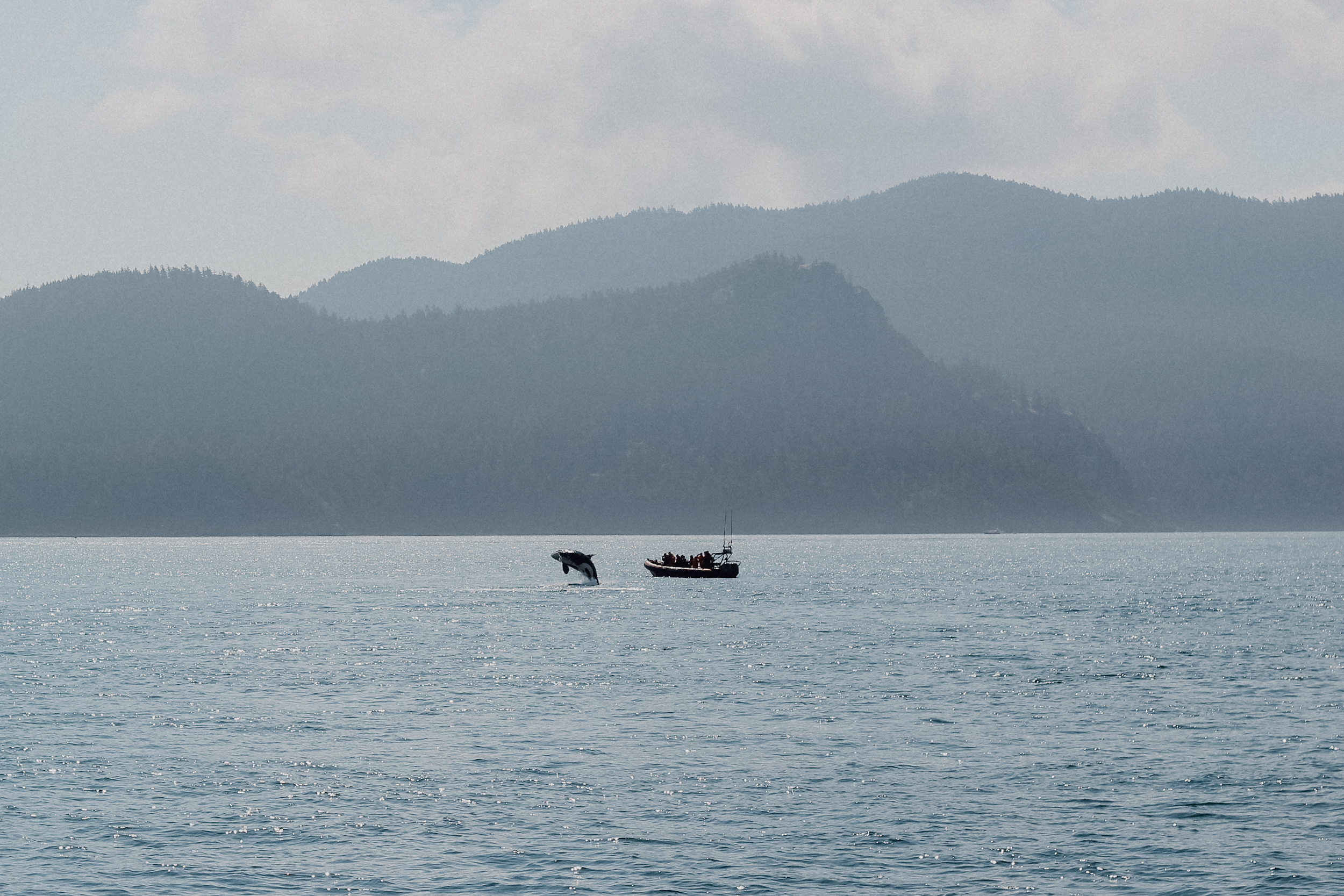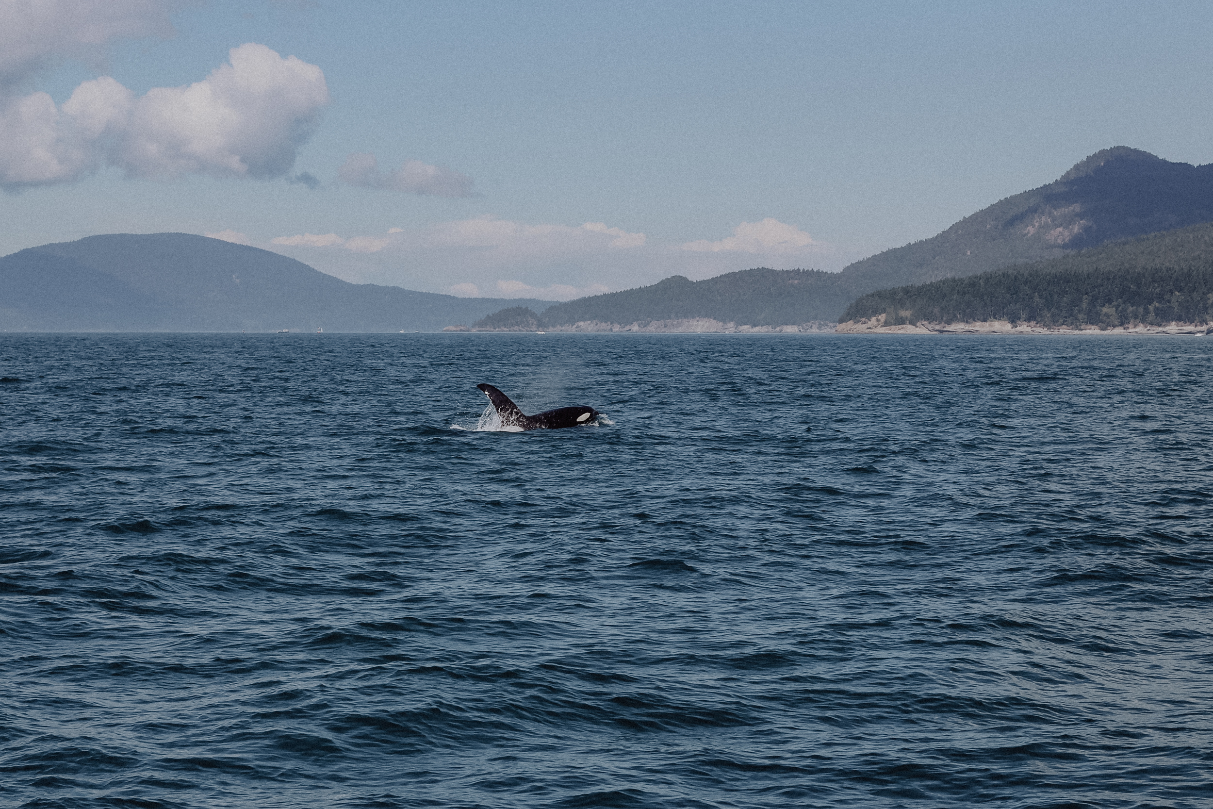 In Anacortes starten zur Saison von Februar bis November starten hier täglich die kleinen Schiffe der Whale Watching Companies in die Juan Fuca Straße zwischen Washington und Vancouver Island, um dort Wale zu beobachten. Während dieser Zeit sind Walsichtungen, nahezu garantiert. Auch ich habe riesiges Glück und sehe neben einer Horde Seelöwen auch mehrere Schwertwal-Gruppen. Einige größere Männchen kommen sogar sehr nah an das kleine Boot heran und auch ein Muttertier mit ihrem Kalb taucht immer wieder vor der malerischen Kulisse der Inseln auf.