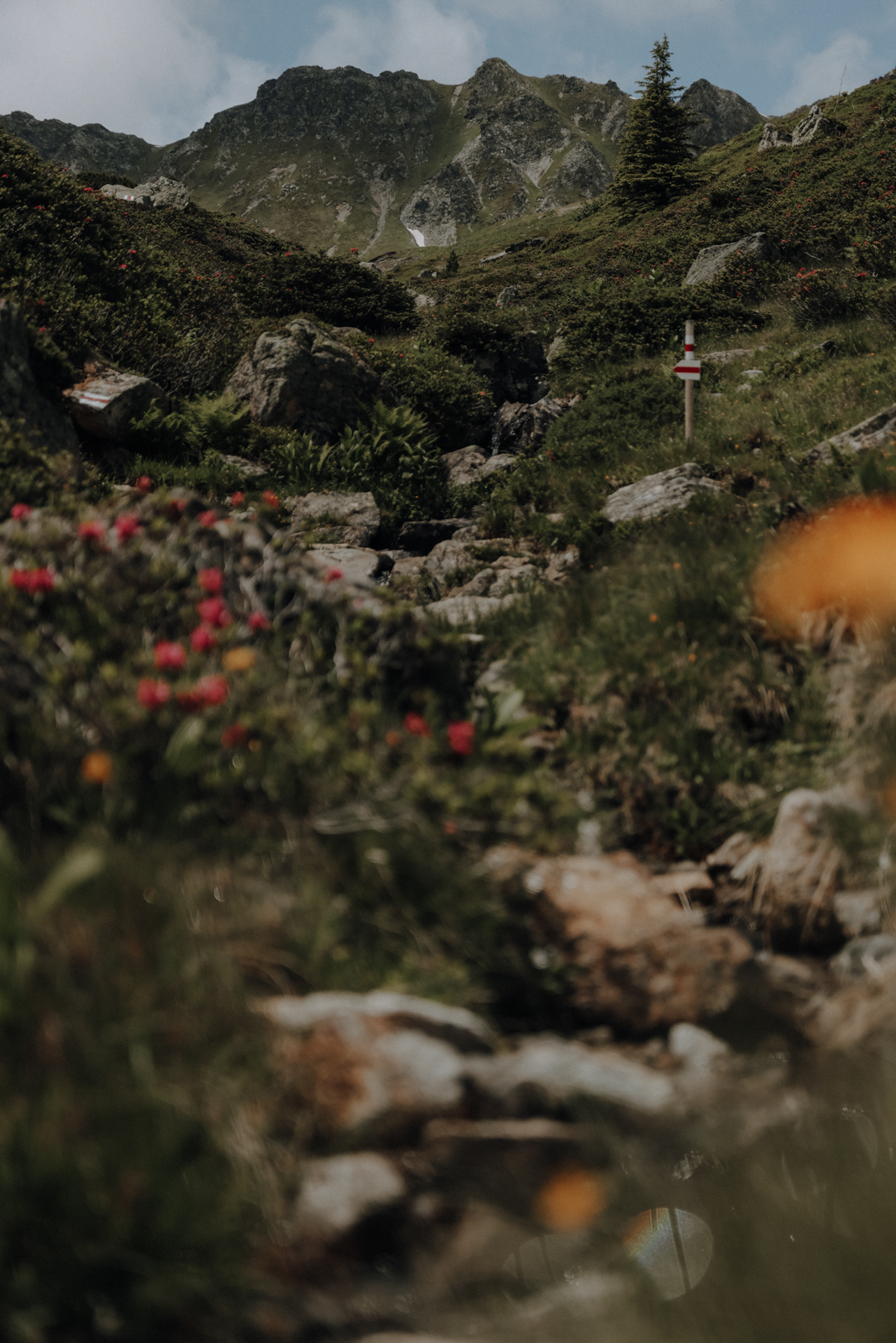 So tat ich mit meinem angebrochenen Tag das einzig Vernünftige, was ich noch tun konnte: Ich wählte eine der vielen schönen Talwanderungen. Angezogen von den Wildblumenwiesen und dem Wasserfall, den ich zuvor schon aus dem Auto heraus gesehen hatte, entschied ich mich für den Montafonerhausweg bei Gortipohl.