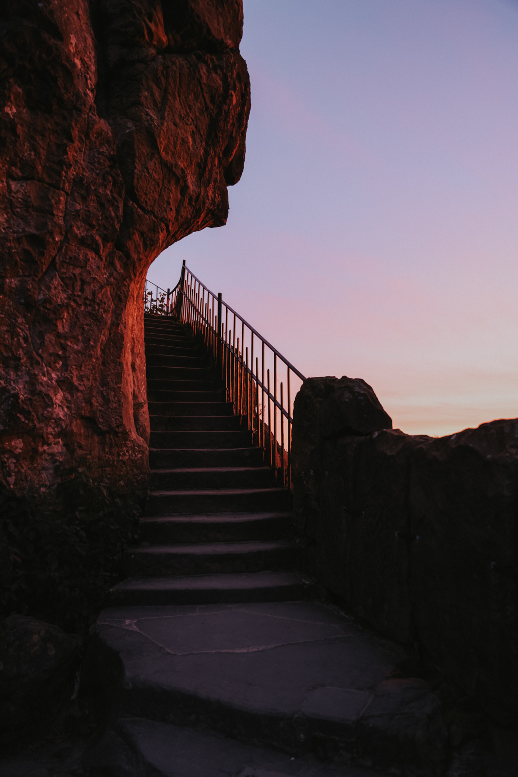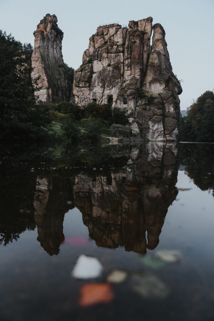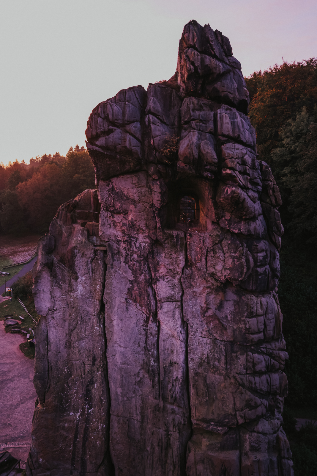 Weil die Externsteine so beliebt sind, dass jährlich fast eine halbe Million Menschen zu Besuch kommen, war es vermutlich unabhängig von der unglaublichen Lichtstimmung eine kluge Entscheidung, gleich zum Sonnenaufgang zu kommen. Immerhin eine der beiden Aussichtsplattformen ist auch außerhalb der Öffnungszeiten zugänglich.