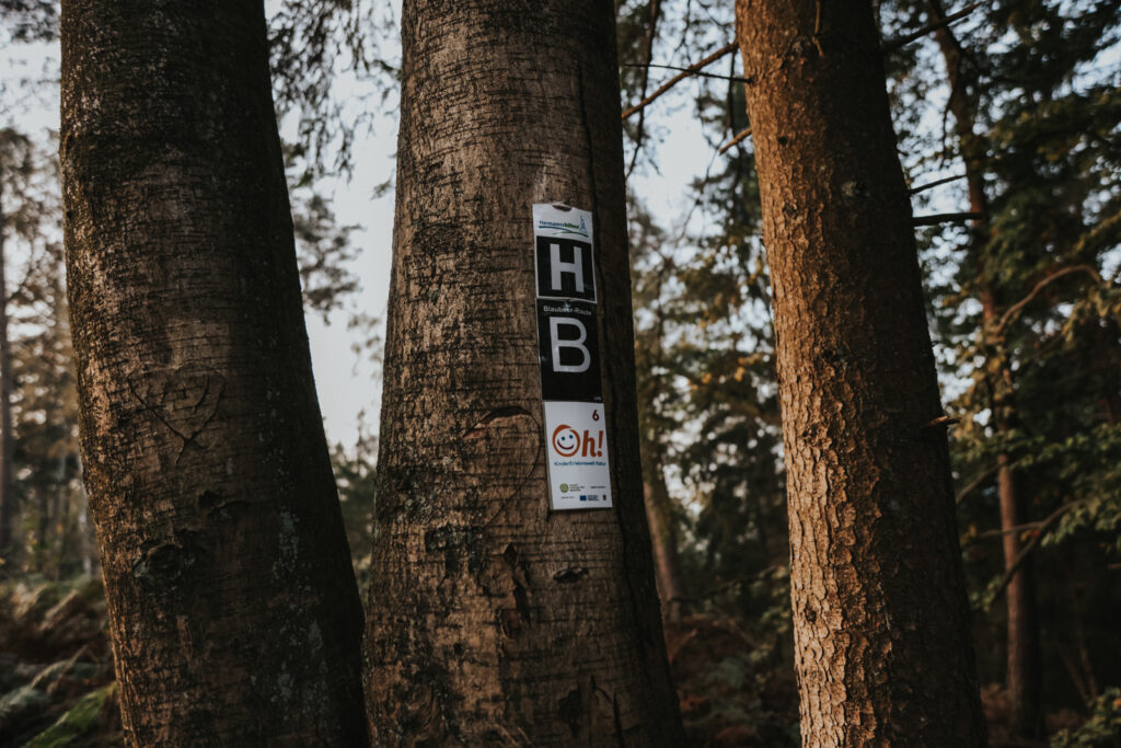 Wie es sich für einen “Top Trail” gehört, sind sowohl Hermannsweg als auch Eggeweg durchweg so gut markiert, dass es theoretisch nicht einmal komoot oder eine Wanderkarte bräuchte. Beide Wege erkennst Du an einer schwarzen, quadratischen Markierung, wobei der Hermannsweg mit einem weißen “H” und der Eggeweg mit einem weißen “X” gekennzeichnet ist.