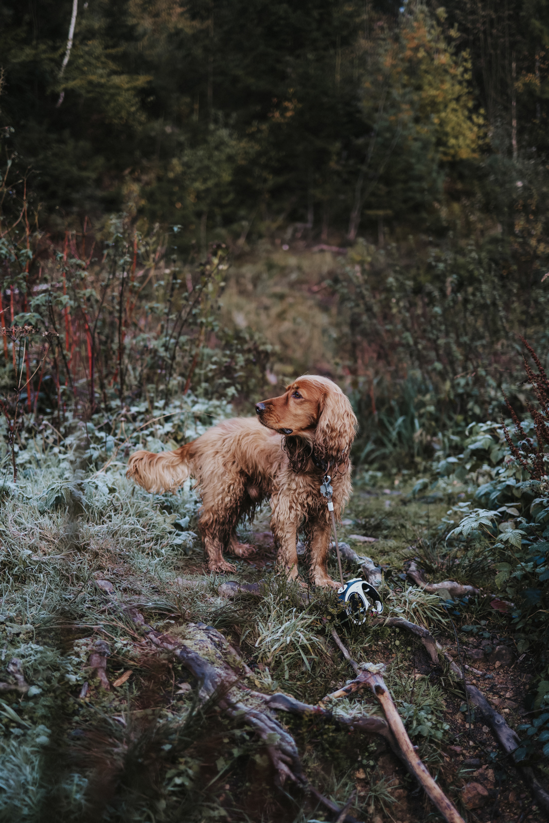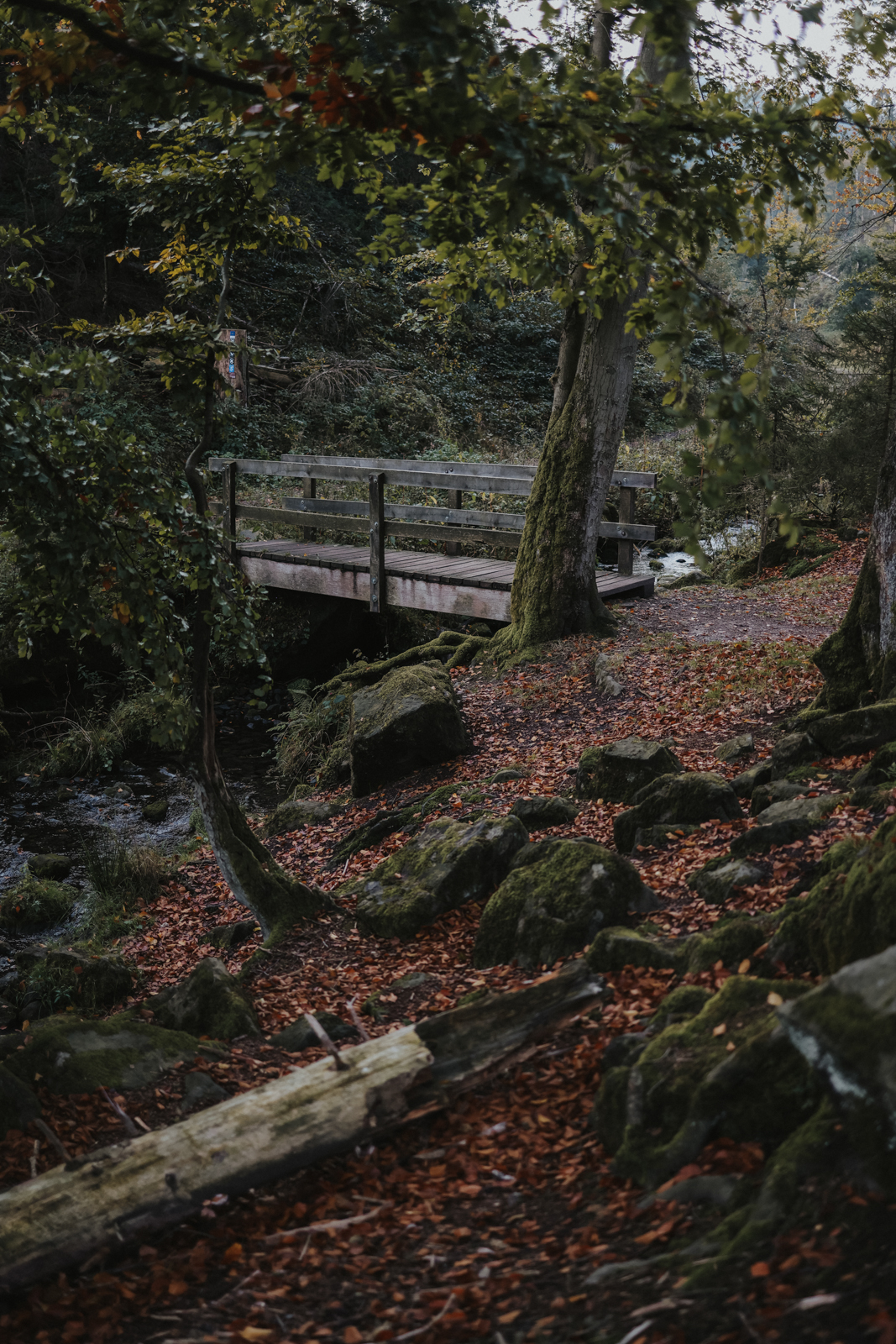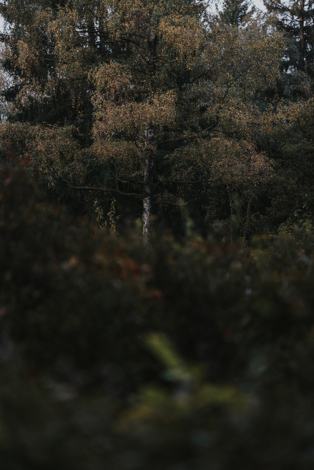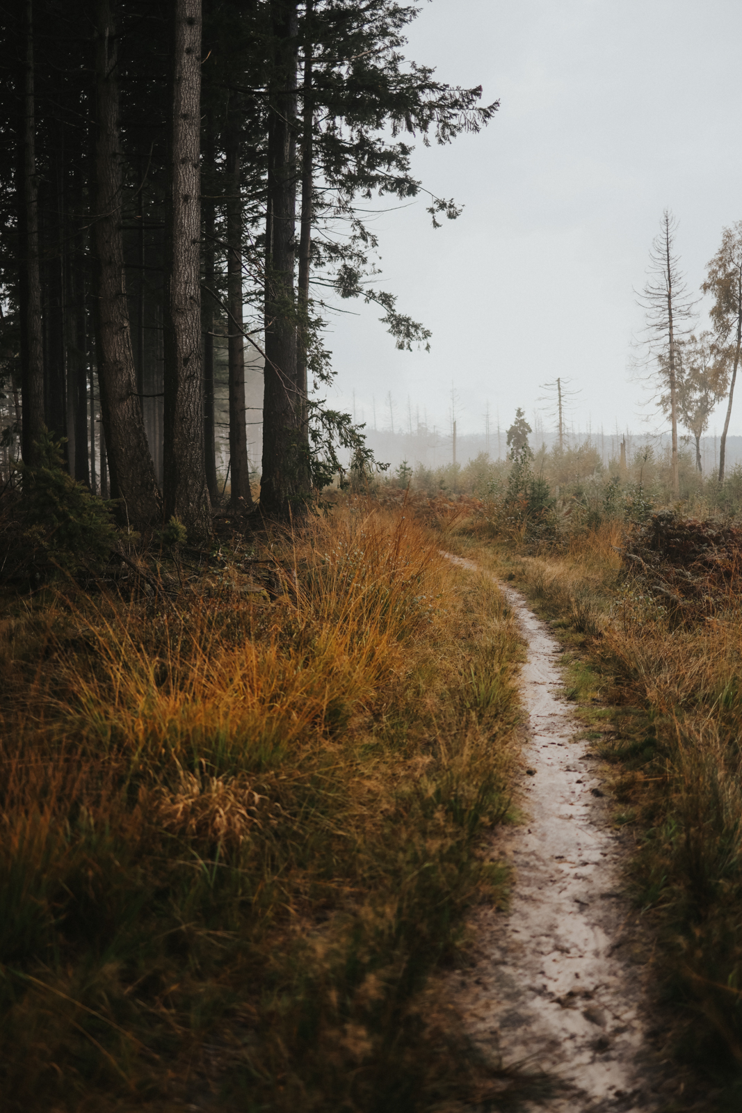 Doch glaub nicht, der restliche Weg hätte nicht mit seinem spektakulären Anfang mithalten können! Bereits wenige Meter oberhalb der Externsteine breiten sich große Flächen an wilden Heidelbeersträuchern aus, an denen man sich zur richtigen Jahreszeit mit einem zweiten Frühstück verpflegen kann. Mit den Heidelbeeren in der einen Hand und Timber an der anderen, schlenderte es sich fast von allein ins Silbertal. Rückblickend bin ich sehr froh, dass ich die Bilder aus den Tagen vor dem großen Waldsterben nicht kannte, denn andernfalls hätte ich die Landschaft vermutlich ebenso traurig betrachtet wie die Einheimischen. So aber, da ich den Unterschied gar nicht kannte, konnte ich mich sehr an dem kleinen Bachlauf und den Holzbrücken erfreuen, den gelb gefärbten Gräsern und dem ersten Frost des nahenden Winters, der während der Nacht ins Tal gekrochen war.