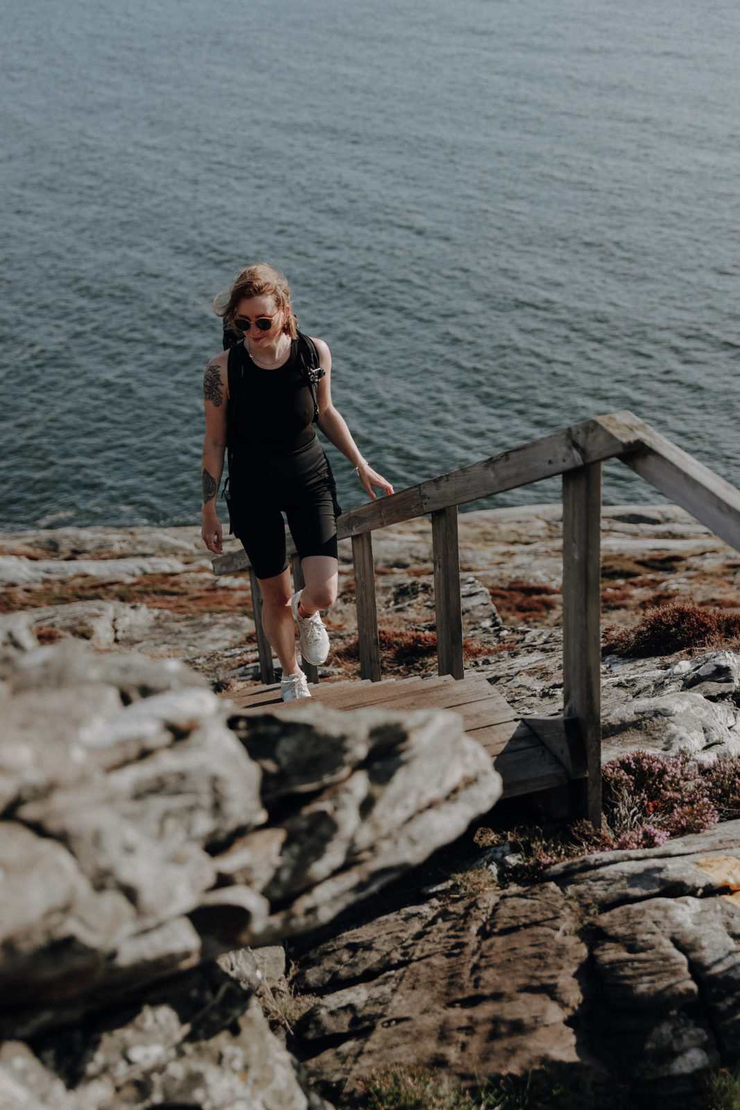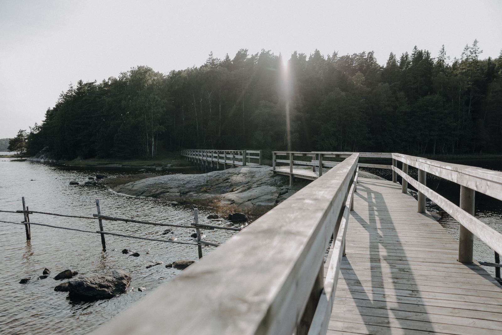 Nach etwa der Hälfte der Tour führt der Weg direkt auf die Klippen, auf denen sich der Wald lichtet und man den freien Blick über die Schärenlandschaft genießen kann. Das Highlight wartet jedoch am Ende der Wanderung, wo der teils steile Weg wieder hinab führt zu den idyllischen Strandwiesen, für die das Naturreservat so bekannt ist. Hier finden sich nicht nur mehrere Strände, sondern auch zahlreiche Felsen, von denen aus man ins Wasser springen kann. Achte in diesem Gebiet auch unbedingt auf den etwas versteckten Holzsteg. Dieser schaut genau in Richtung Westen und eignet sich mit seinem Tisch ganz wunderbar für ein Abendessen zum Sonnenuntergang.