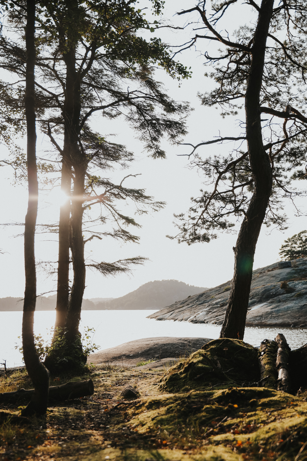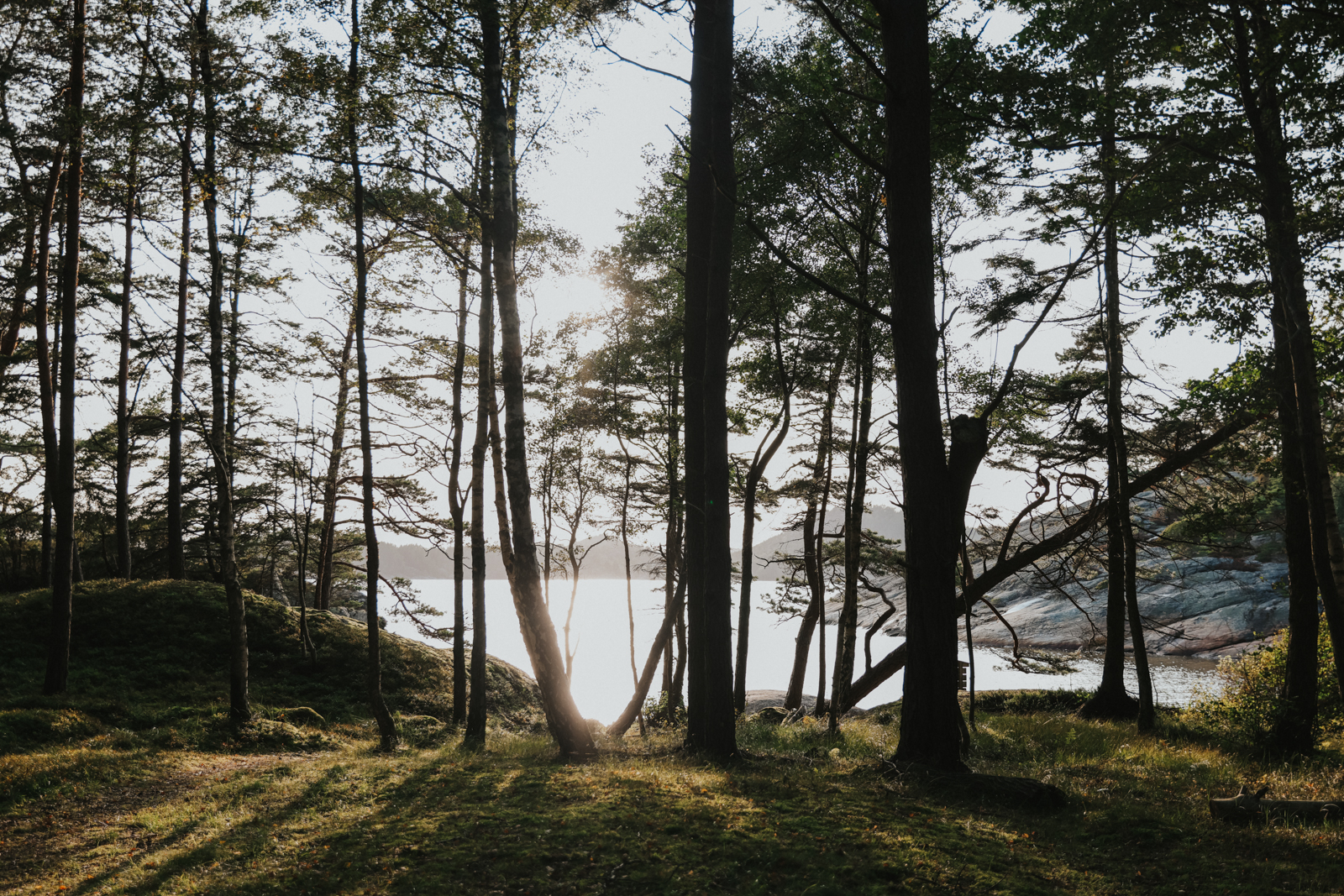 Gleich neben dem Gehöft beginnt der 4 km lange Rundwanderweg Sundbyleden. Auch wenn die ersten Meter auf dem breiten Waldweg es noch nicht vermuten lassen, erwartet dich schon nach weniger hundert Metern eine abenteuerliche Wanderung auf schmalen Pfaden über Wurzeln und durch enge Schluchten hinauf zum höchsten Punkt der Gegend. Der teils steile Anstieg lohnt sich sehr: Von “Solklinten” aus hat man einen fantastischen Blick über die Schären, der natürlich umso spektakulärer ist, wenn man abends zum Sonnenuntergang kommt.