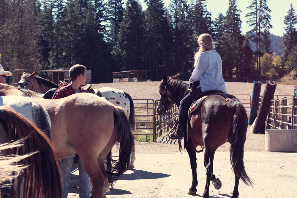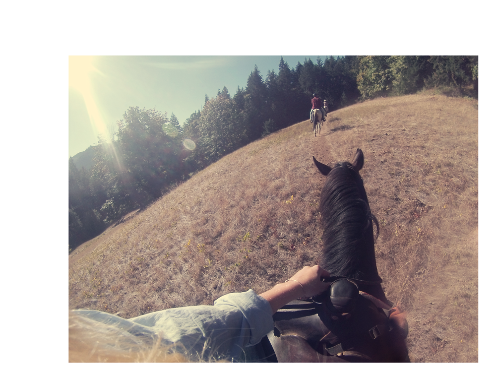 Es war ja schon ein bisschen wie im Bilderbuch, mein Trail-Ride durch das Backcountry von White Salmon. Ich ritt durch dichte Wälder und Bäche, galoppierte durch die High Prairie und genoss den atemberaubenden Ausblick auf die bunten Nadelwälder und die Berglandschaft des Mount Hood.