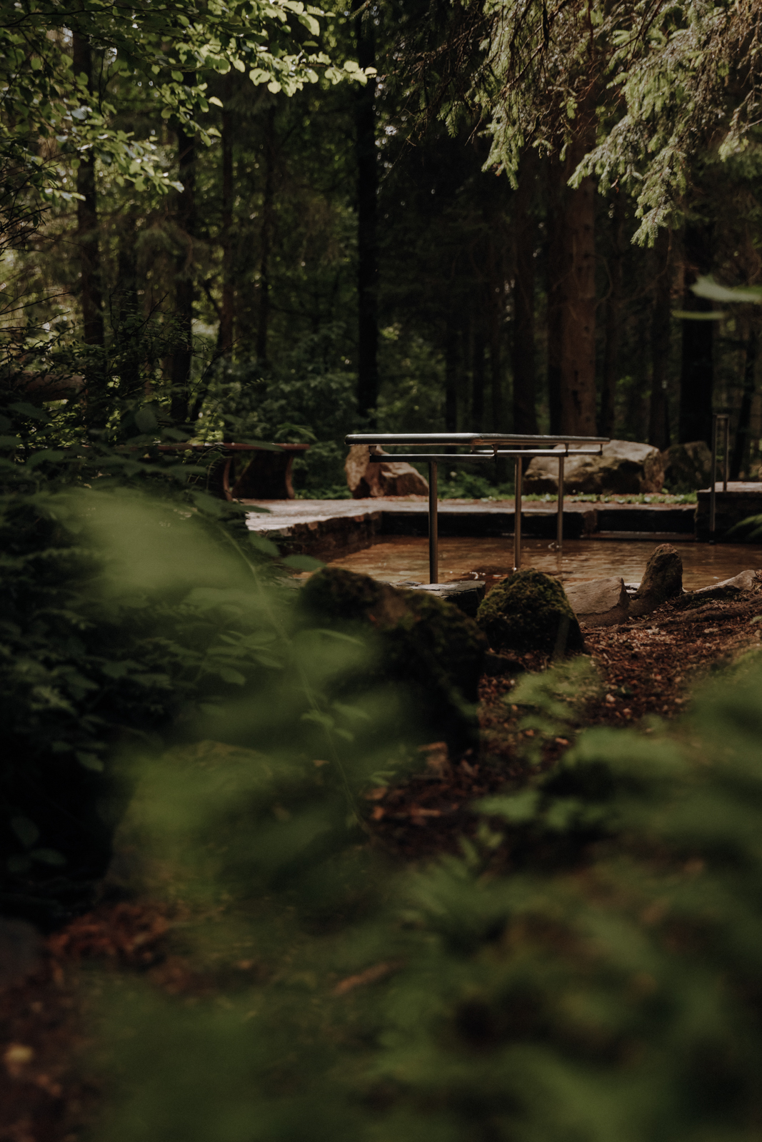Am Fels vorbei (oder darüber geklettert), folgt man dem Plätschern des Hölzbachs tiefer in den Wald hinein bis zur Weggabelung an dem hübsch angelegten Kneippanlage. An heißen Tagen lohnt es sich, Badesachen und Handtuch einzupacken - ich jedenfalls habe nie verstanden, weshalb man nur die Beine nass machen soll, wenn man schon so herrlich frisches Bachwasser in einem Badebecken bekommt. 😉