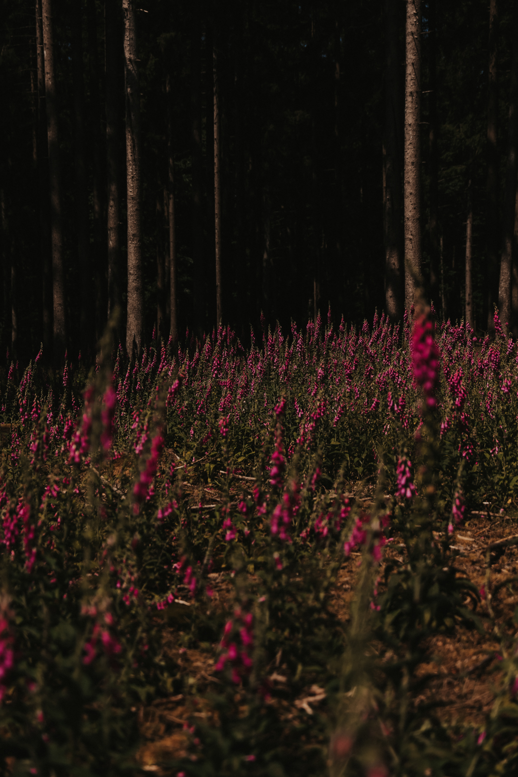 Anschließend windet sich der Pfad in Serpentinen hinauf und streift dabei riesige kuschelweiche Moosteppiche und pink leuchtende Fingerhut-Ansammlungen, so dicht gewachsen wie der Wald selbst.