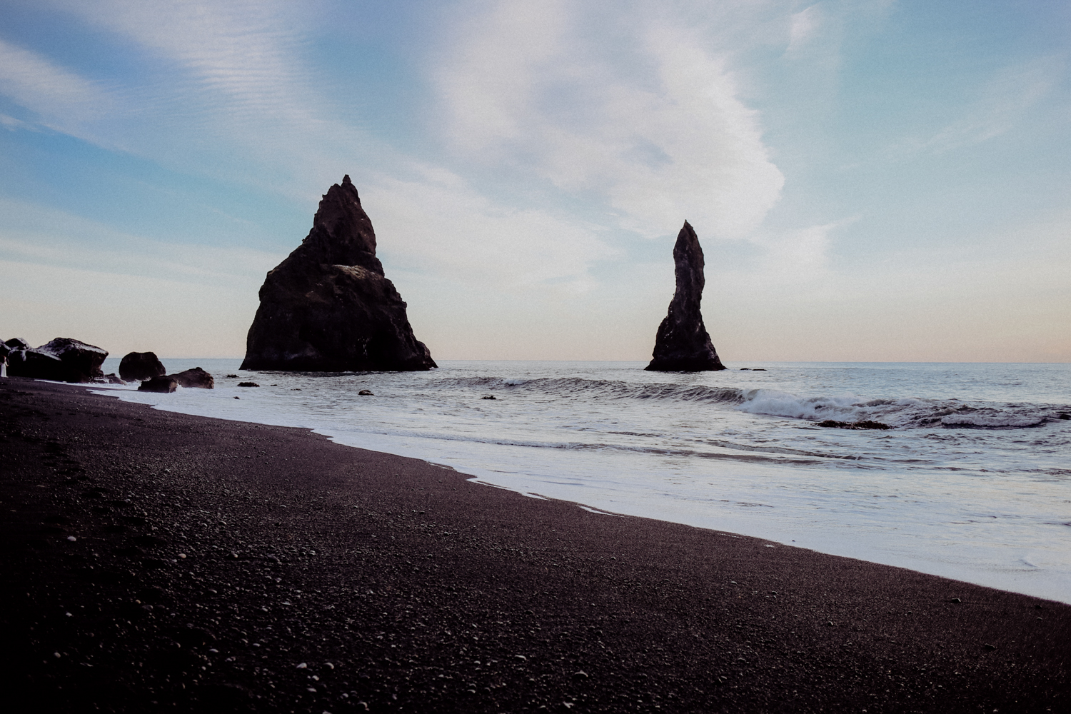 Auf dem Rückweg nach Hvolsvöllur haben wir hinter Vik einen kleinen Abstecher zum Reynisfjara Beach und dem Aussichtspunkt Dyrhólaey eingelegt, um uns von der angespannten Fahrt auf den letzten fünfzig über eisglatte Fahrbahnen zu erholen.