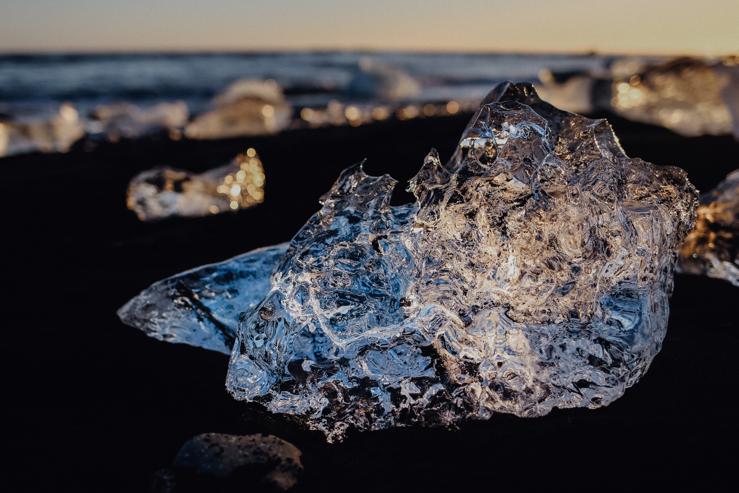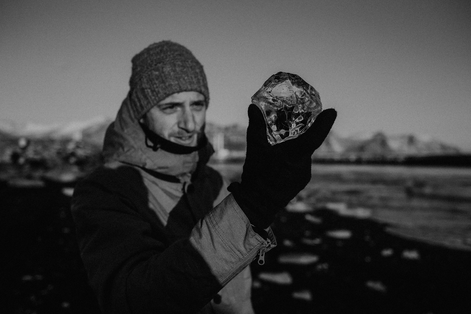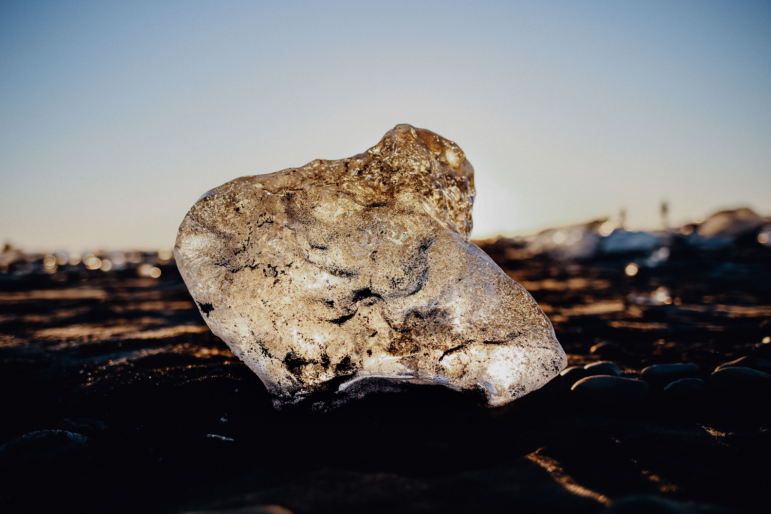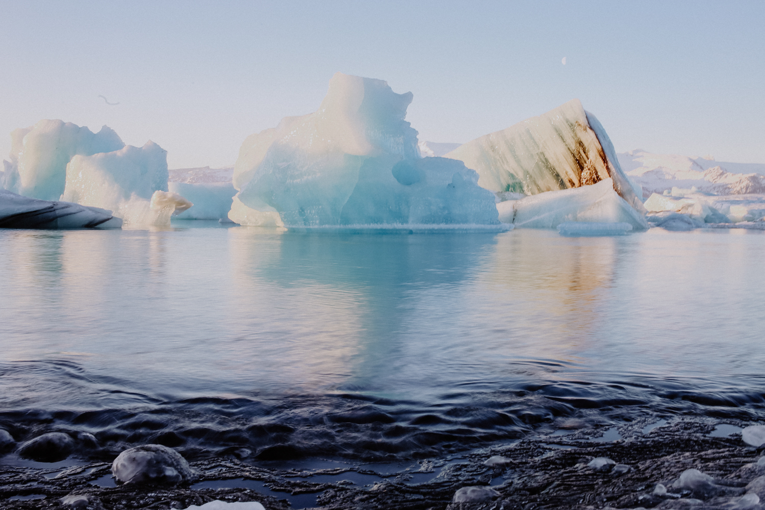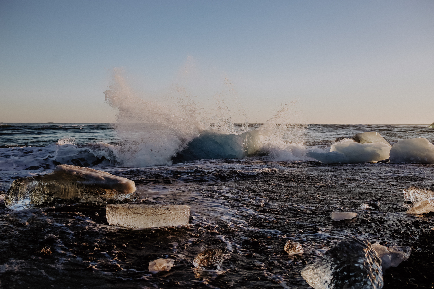Den vollen Tag, den wir zwischen unseren beiden Übernachtungen hatten, haben wir am Jökulsarlon und am Diamond Beach verbracht. Der Strand hat seinen Namen von den unzähligen Eisbrocken, die sich vom Vatnajökull, dem größten Gletscher Europas, lösen und an den Strand gespült werden. Auf der anderen Seite, direkt am Gletscher, schwimmen riesige blau schimmernde Eisberge im Wasser und scheinen nur darauf zu warten, endlich ins Meer gespült zu werden.