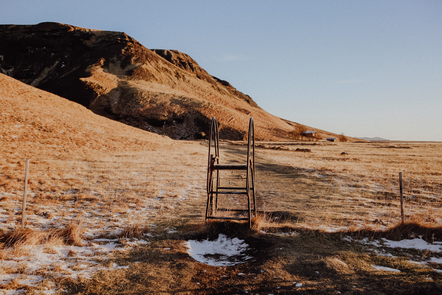 Kvernufoss ist nur wenige hundert Meter vom Skogafoss entfernt, wird aber von nahezu niemandem gefunden, zumal die meisten Touristen sowieso pünktlich wieder im Bus sitzen müssen… Um den Wasserfall zu finden, folgst Du von der Ringstraße aus den Hinweisschildern zum Skogafoss (die kannst Du gar nicht übersehen). Anstatt aber nach links zum Parkplatz abzubiegen, fährst Du weiter geradeaus und schließlich nach rechts zum Skoga Museum (auch das ist ausgeschildert, es gibt nur diese beiden Straßen). Dort haben wir unser Auto geparkt. Hinter dem Gebäude befindet sich rechterhand eine kleine Leiter, die über den Zaun auf privates Weideland führt.